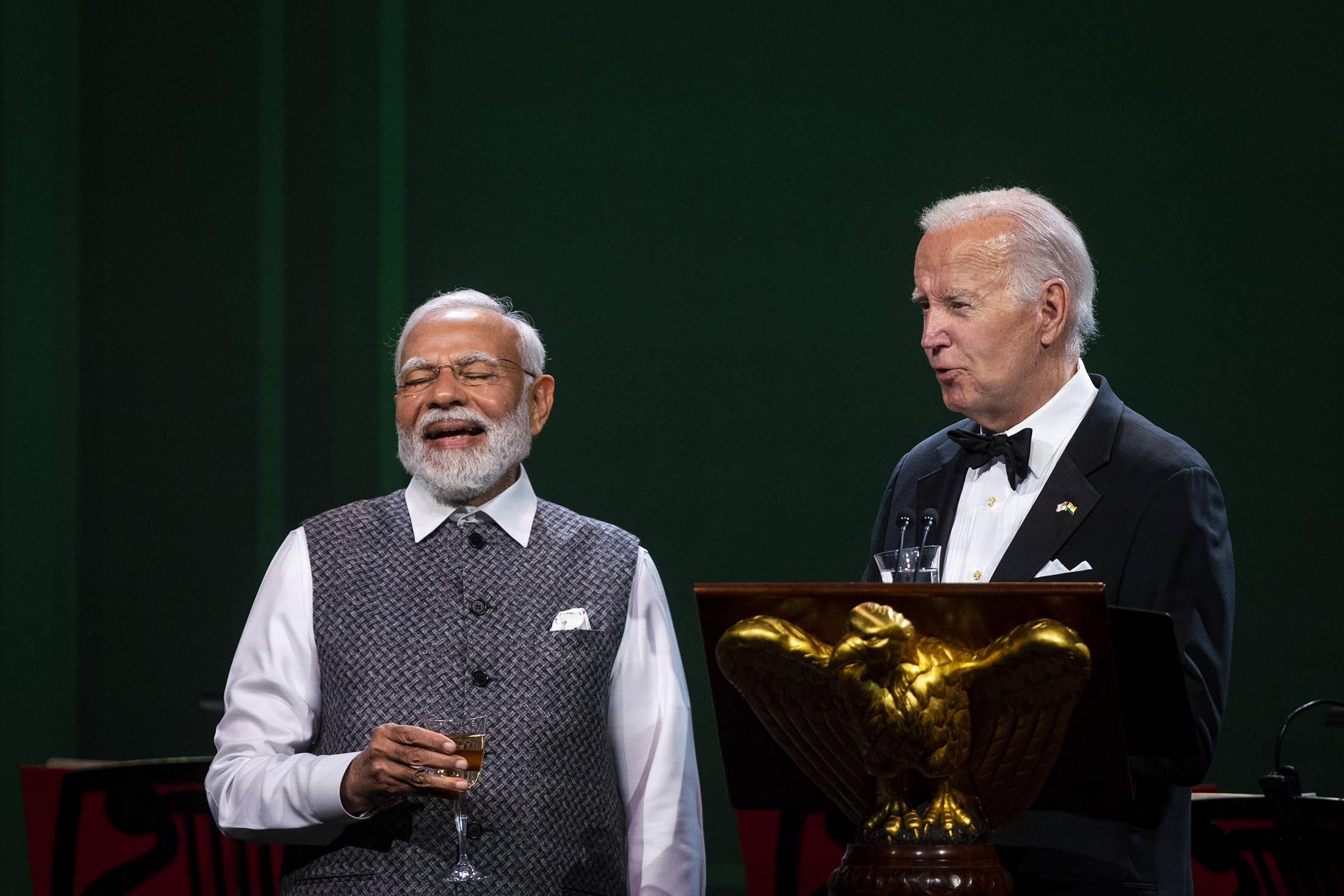 印度总理纳伦德拉·莫迪和美国总统乔·拜登在六月份在白宫举行的国宴上。摄影师:Al Drago/Bloomberg“印度在多边平衡上表现得相当出色,” 卡内基国际和平基金会南亚项目主任兼高级研究员米兰·瓦伊什纳夫说。“它之所以能够做到这一点,是由更大的地缘政治因素推动的,即中国的崛起和俄罗斯的衰落。”