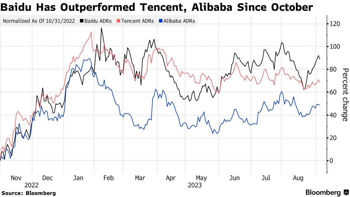 摩根大通公司更看涨,预计人工智能生成内容服务的注册将提振主要中国互联网股的整体情绪,并对百度的股价和收益产生“更为积极的”影响,而不是对腾讯和阿里巴巴集团。在过去10个月的涨势中,百度表现优于其更大的同行。