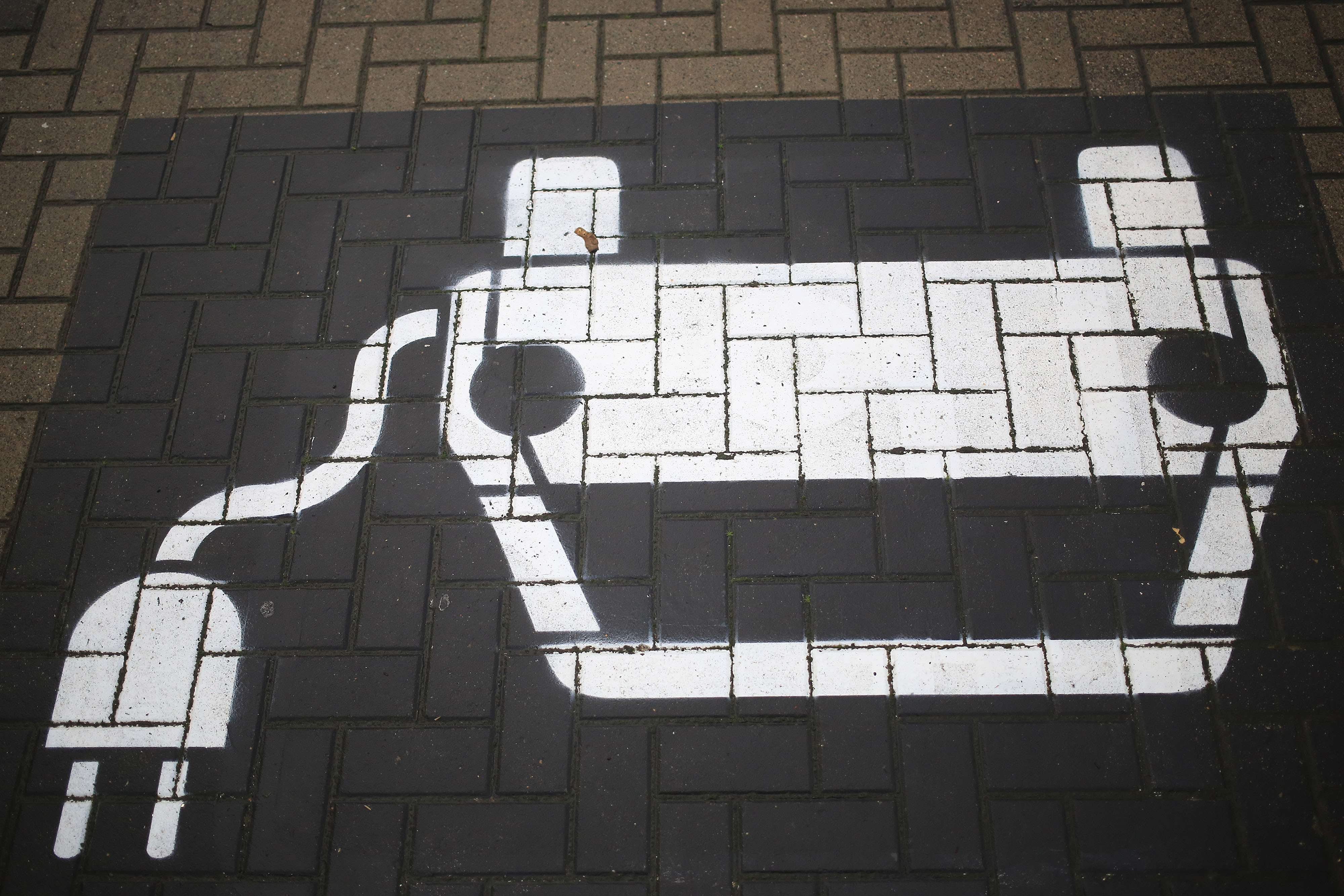 德国沃尔夫斯堡大众总部附近的电动汽车停车位。