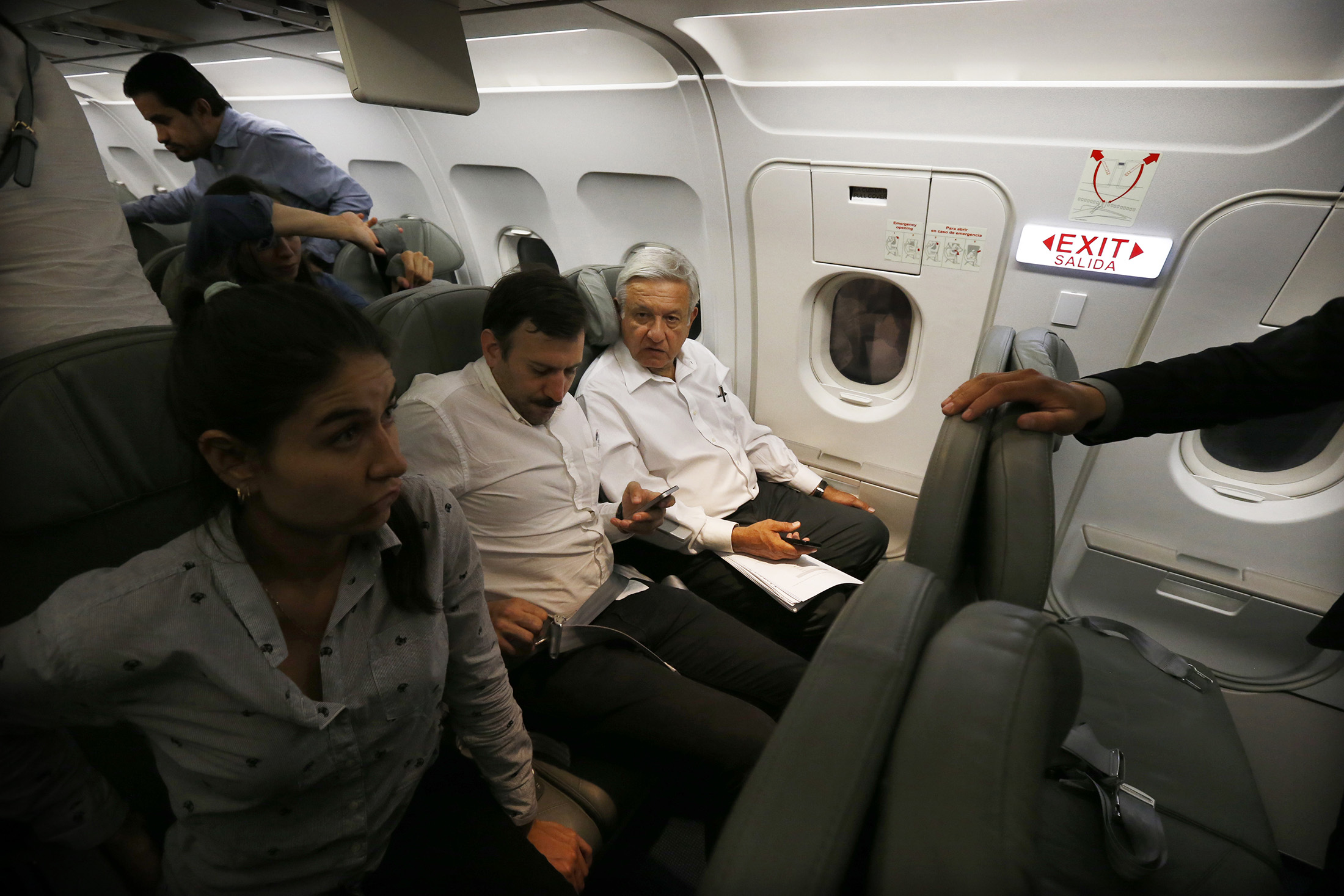 AMLO坐在商业航班上的经济舱里与工作人员一起旅行,从瓜达拉哈拉飞往墨西哥城,时间是2019年3月9日。摄影师:Marco Ugarte/AP Photo每个有权势的人都有搭乘经济舱的限制,即使是以勤俭著称的墨西哥总统安德烈斯·曼努埃尔·洛佩斯·奥夫拉多尔。