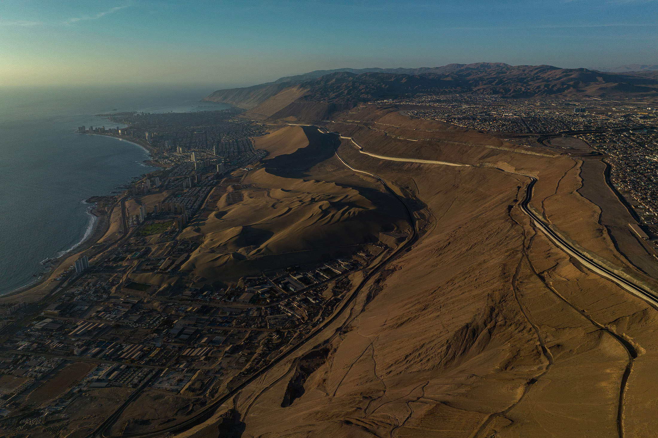 从智利塔拉帕卡的伊基克市向下俯瞰的阿尔托奥斯皮西奥。摄影师:Tamara Merino/Bloomberg这就是Popó的情况,她于2014年从哥伦比亚的卡利移民而来。她首先搬进了伊基克市上方的阿尔托奥斯皮西奥的一间公寓,这是该国北部的一个重要港口城镇。同年,一场地震损坏了许多房屋,她的房东将房租翻了一番,于是她搬到了她的第一个“托玛”。