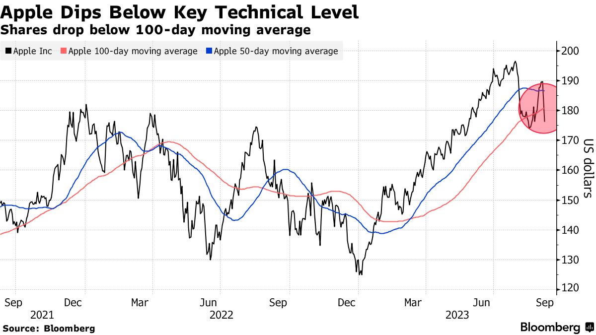 这家总部位于加利福尼亚库比蒂诺的公司股价下跌6.4%,创下一个月来最糟糕的两天跌幅。苹果是美国主要股指中最大的组成部分,加剧了由中国一系列问题引发的更广泛抛售浪潮。