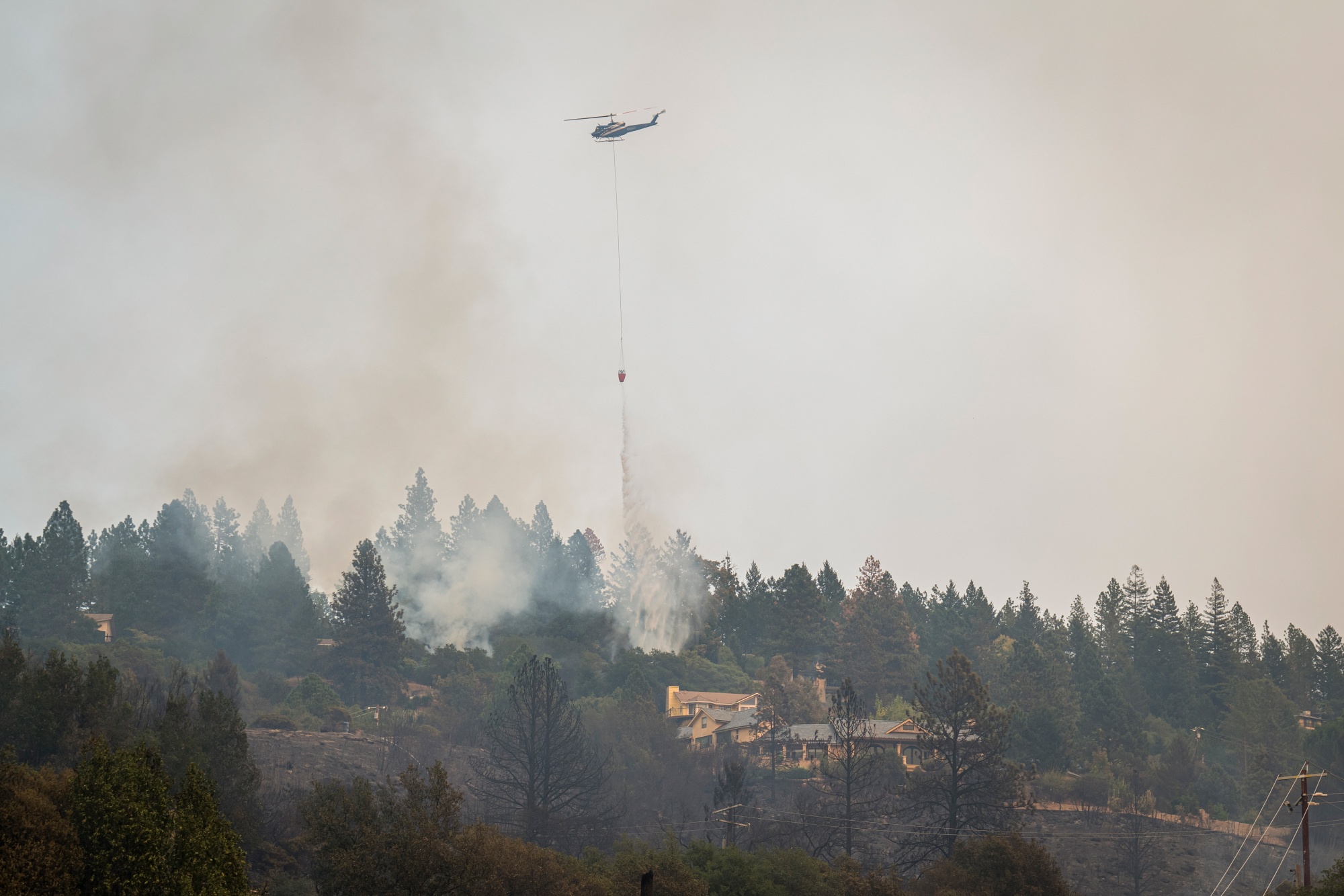 一架直升机在2020年加州纳帕县的Glass Fire期间向一座房屋投放水。摄影师:David Paul Morris/Bloomberg一个重要问题是所有这些将如何在房地产市场中产生涟漪,并重塑正在应对新居民涌入和新资金的社区。