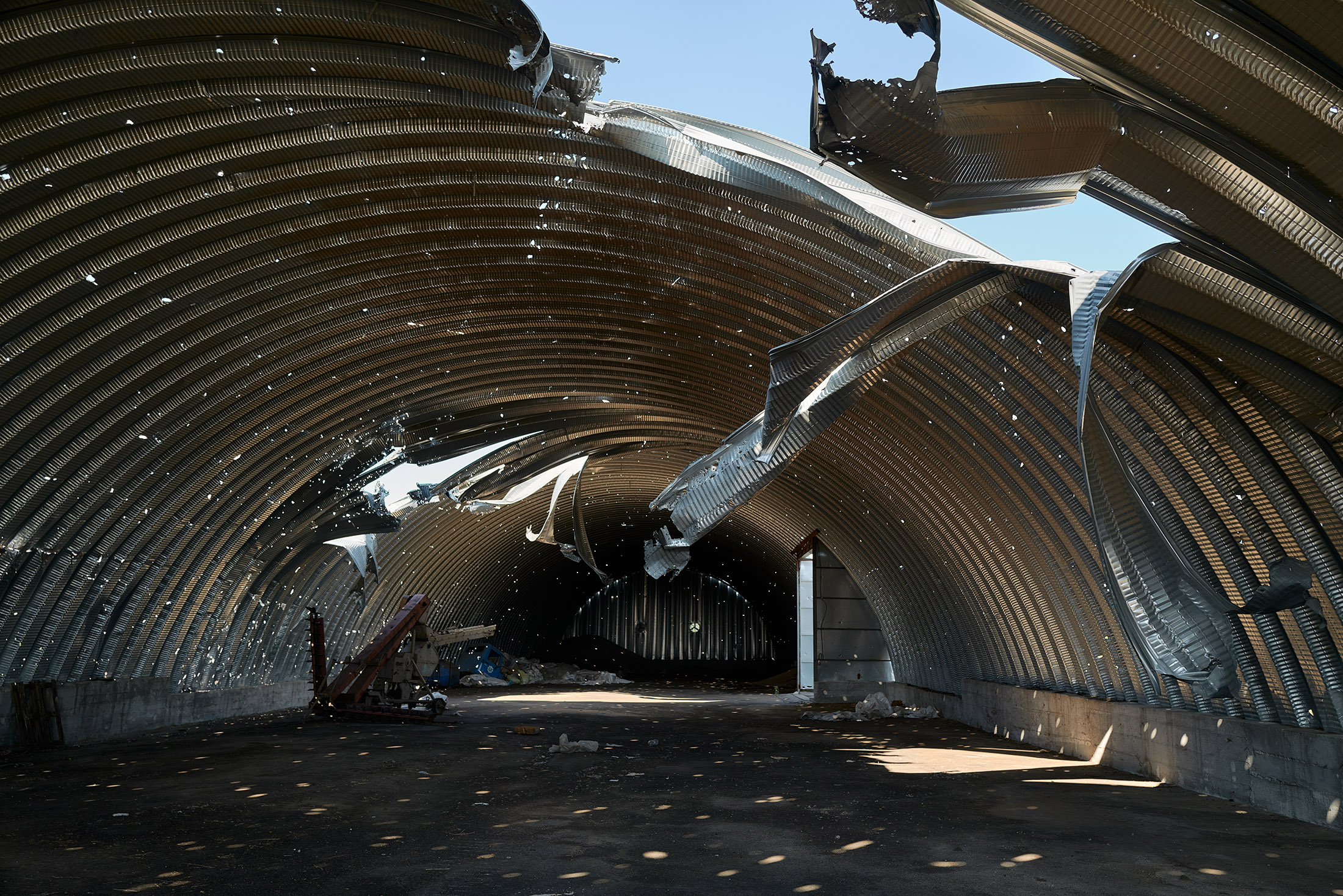 乌克兰扎波罗热地区在9月7日遭受轰炸后被摧毁的粮食储存筒仓。