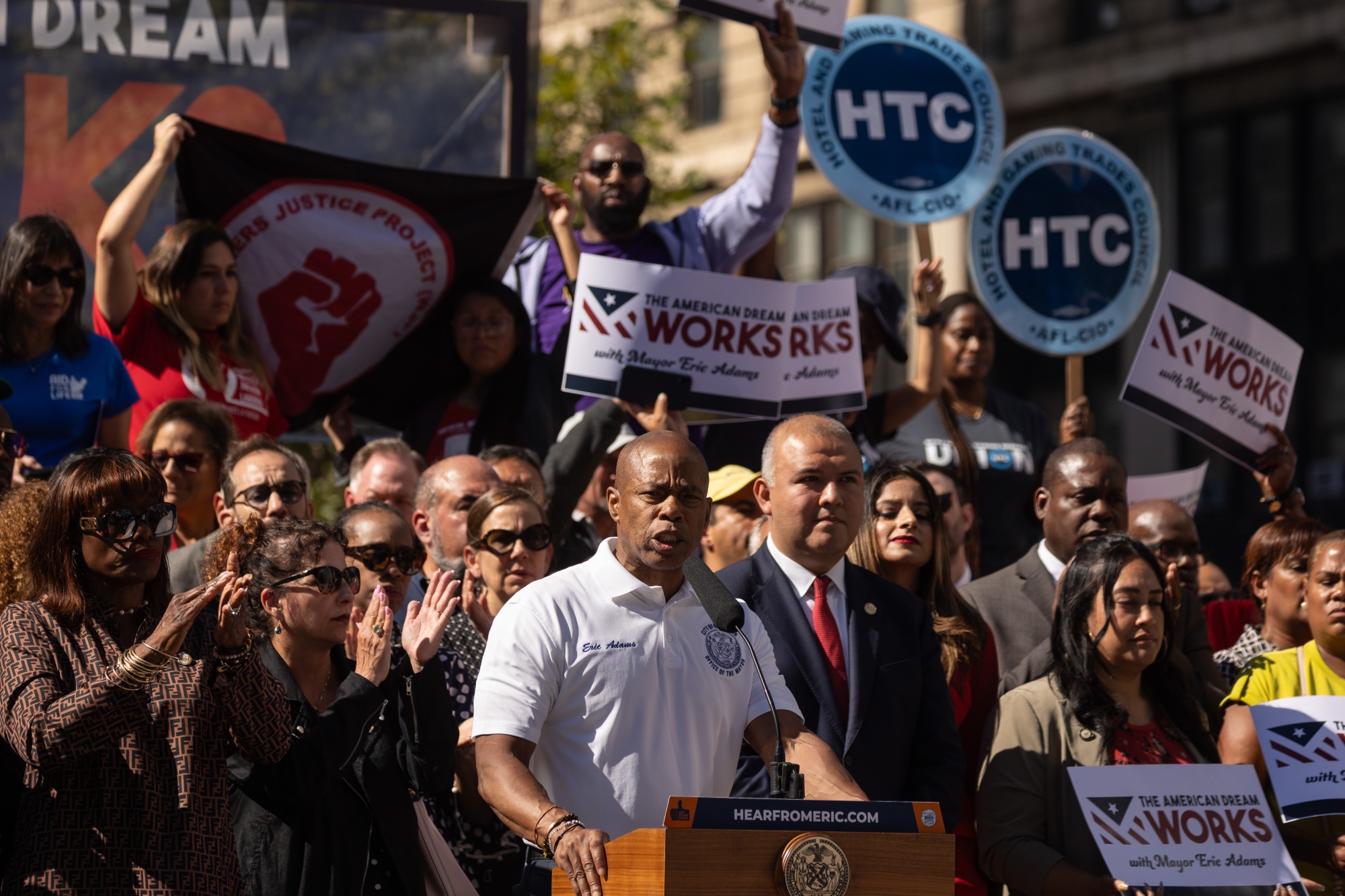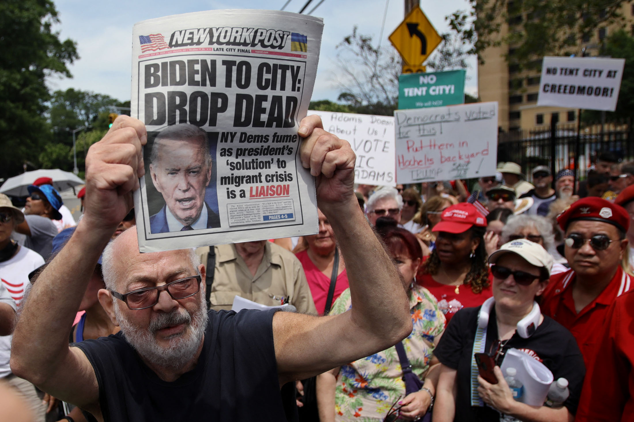 一年后,这种基调发生了巨大变化。亚当斯在110,000名抵达者后警告该市将面临严重后果。他恳求联邦政府提供资金,告诉边境的移民不要来,并要求州官员找到其他地方来安置那些无论如何抵达的人。