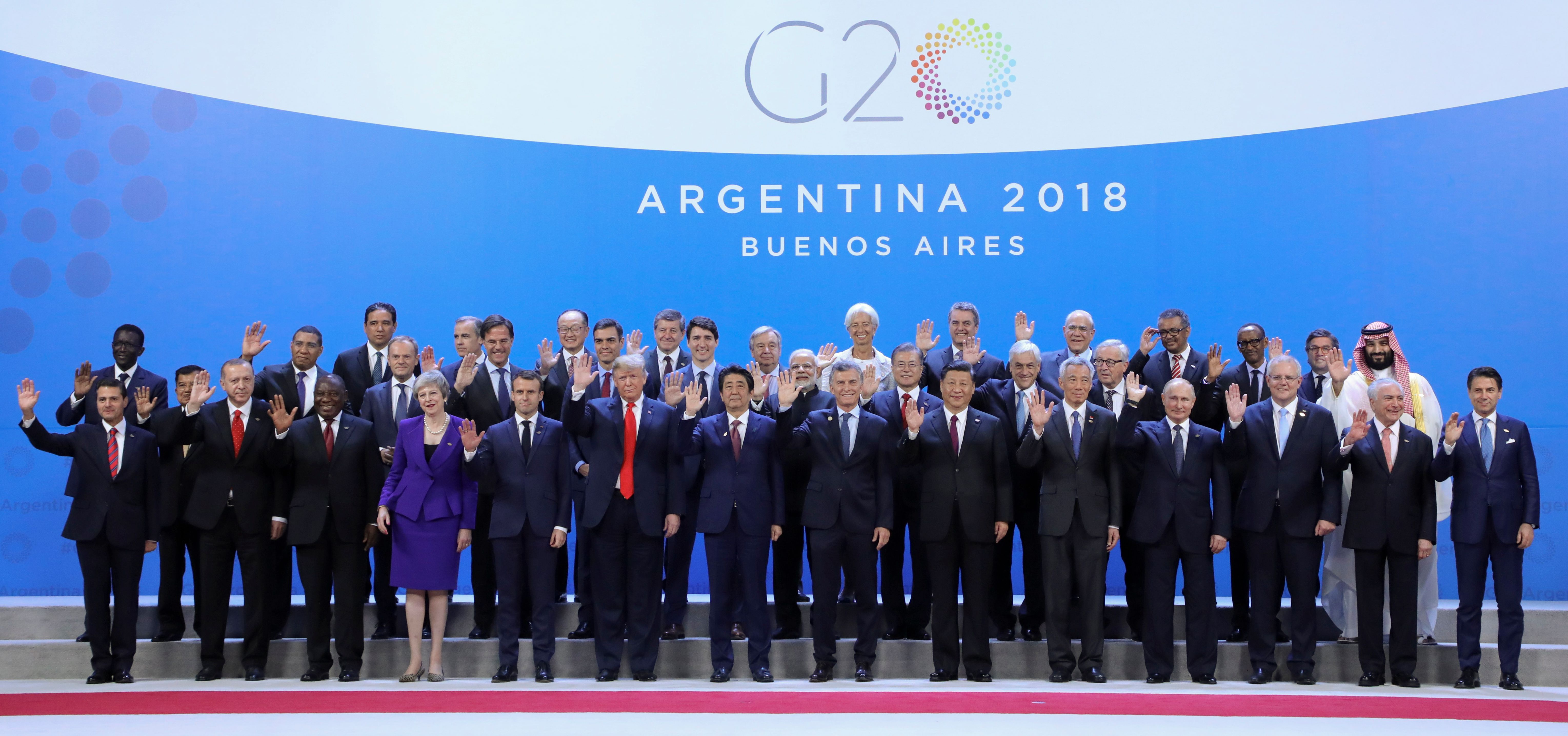 领导人在2018年阿根廷布宜诺斯艾利斯举行的G-20峰会上。摄影师:Ludovic Marin/AFP/Getty Images2018年阿根廷主办G-20峰会时,对于这个现在正遭受严重经济动荡的国家来说,那是更快乐的日子。阿根廷——其总统阿尔贝托·费尔南德斯不再竞选连任,因此出席他的最后一次峰会——刚刚被纳入金砖国家组织,使其成员从巴西、俄罗斯、印度、中国和南非的核心扩大到11个成员。