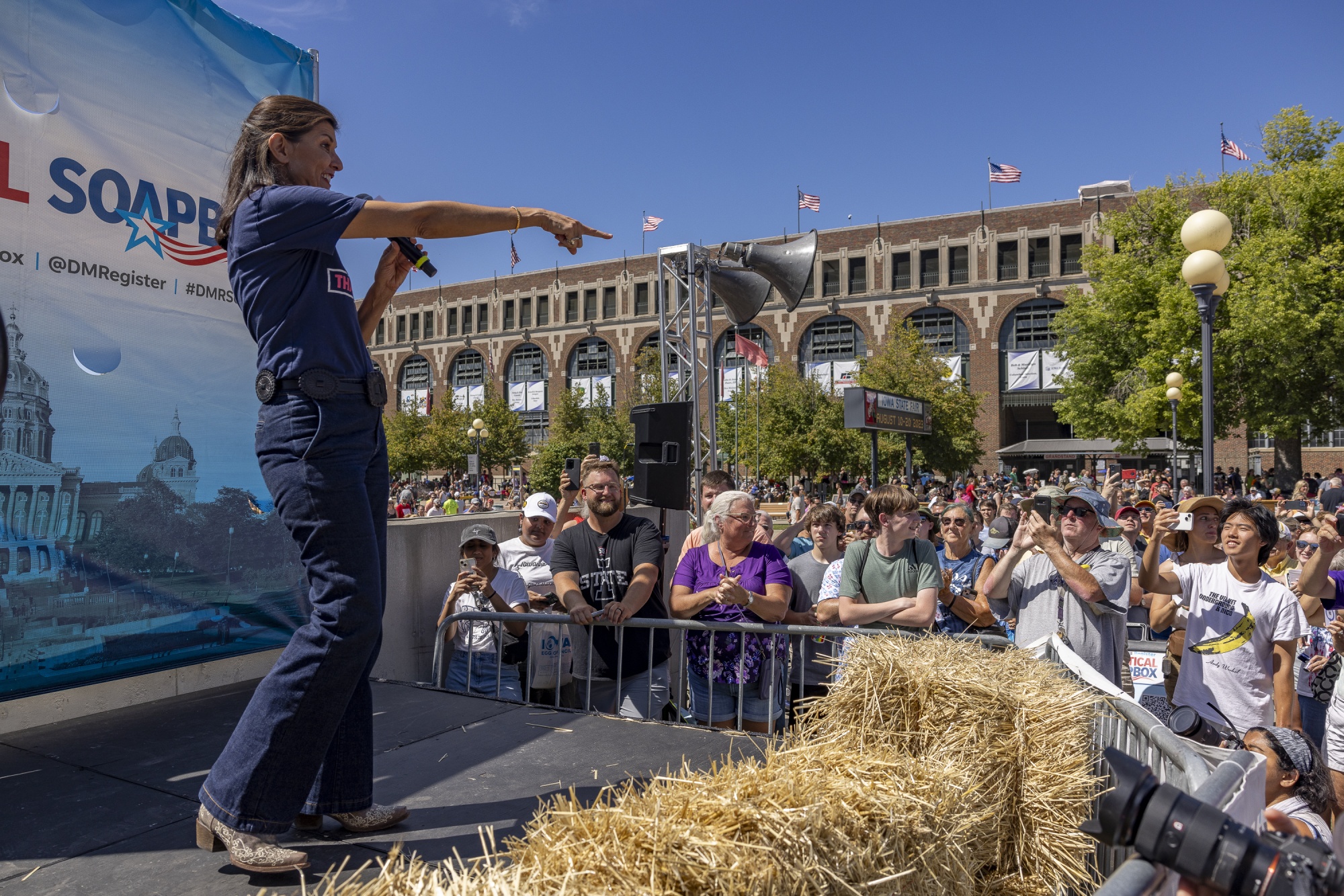 尼基·哈雷在8月份爱荷华州《得梅因纪事报》政治讲坛上。摄影师:瑞秋·穆米/彭博社这与领先者特朗普和德桑蒂斯形成了鲜明对比。这位前总统今年已被起诉四次,因使用竞选资金支付其法律费用而受到批评。德桑蒂斯对私人飞机的偏爱和大量付费顾问团迅速耗尽了他的竞选活动和超级政治行动委员会的银行余额,促使一名官员恳求向捐助者再筹集5,000万美元。