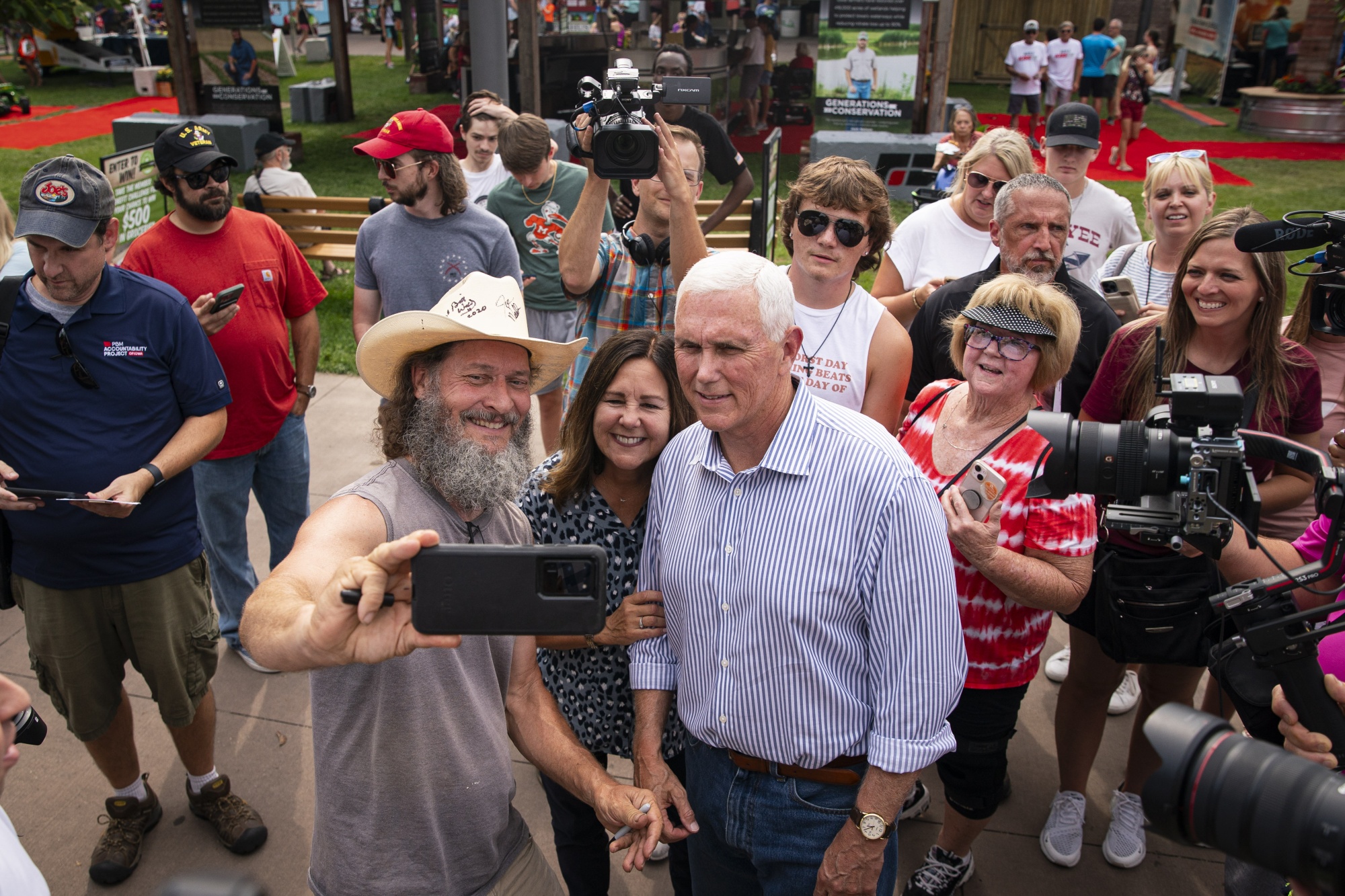 迈克·彭斯,右中,与一名与会者在八月份的爱荷华合影。摄影师:Al Drago/Bloomberg在八月辩论中表现突出后,前南卡罗来纳州州长黑利的支持率为6.1%,前副总统彭斯为4.9%,根据RealClearPolitics的平均值。根据周四发布的CNN/SSRS民调,黑利甚至在2024年的假设性比赛中击败了乔·拜登总统。
