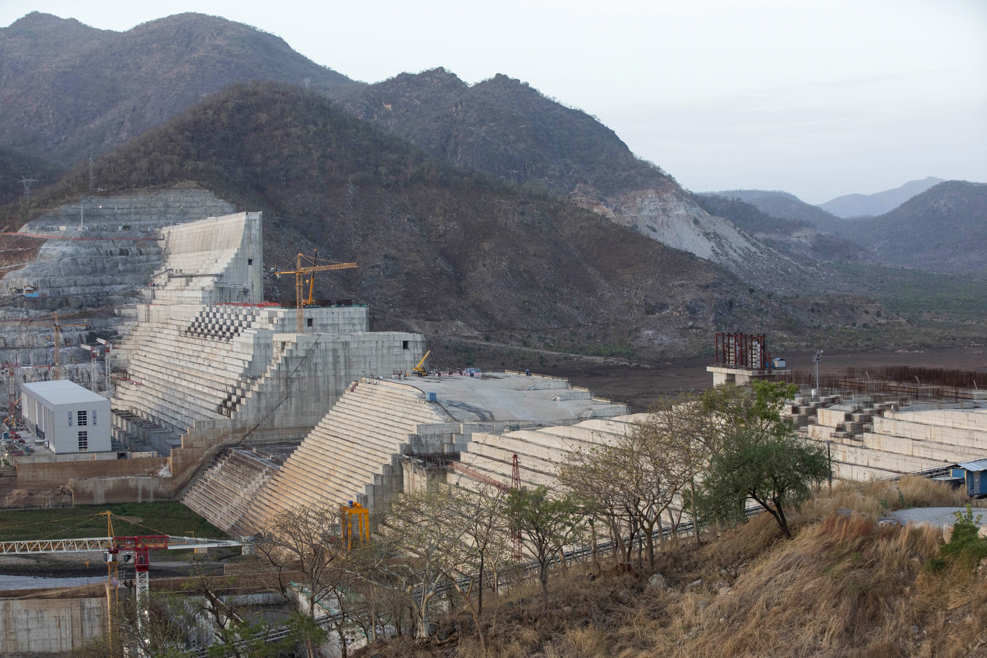 正在建设中的埃塞俄比亚大 renaissance 水坝的现场。