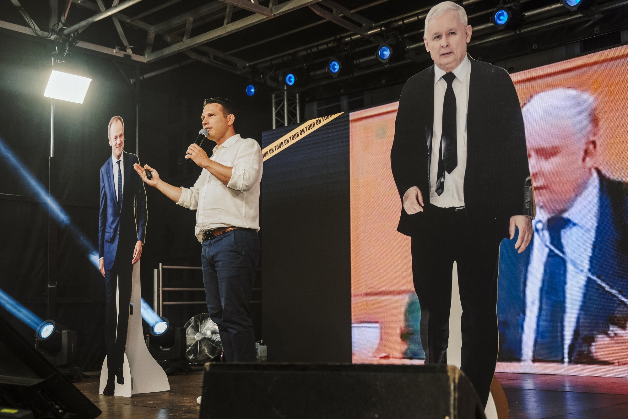 与过去极右翼活动所带来的仇恨和愤怒不同,奥尔什丁确实有一种兴奋的氛围。 精心编排的集会更像是一场喜剧小品。 当卡钦斯基和他的主要挑战者唐纳德·图斯克被嘲笑时,人群发出笑声,后者是最大反对党的主席,前波兰总理和欧洲理事会主席。