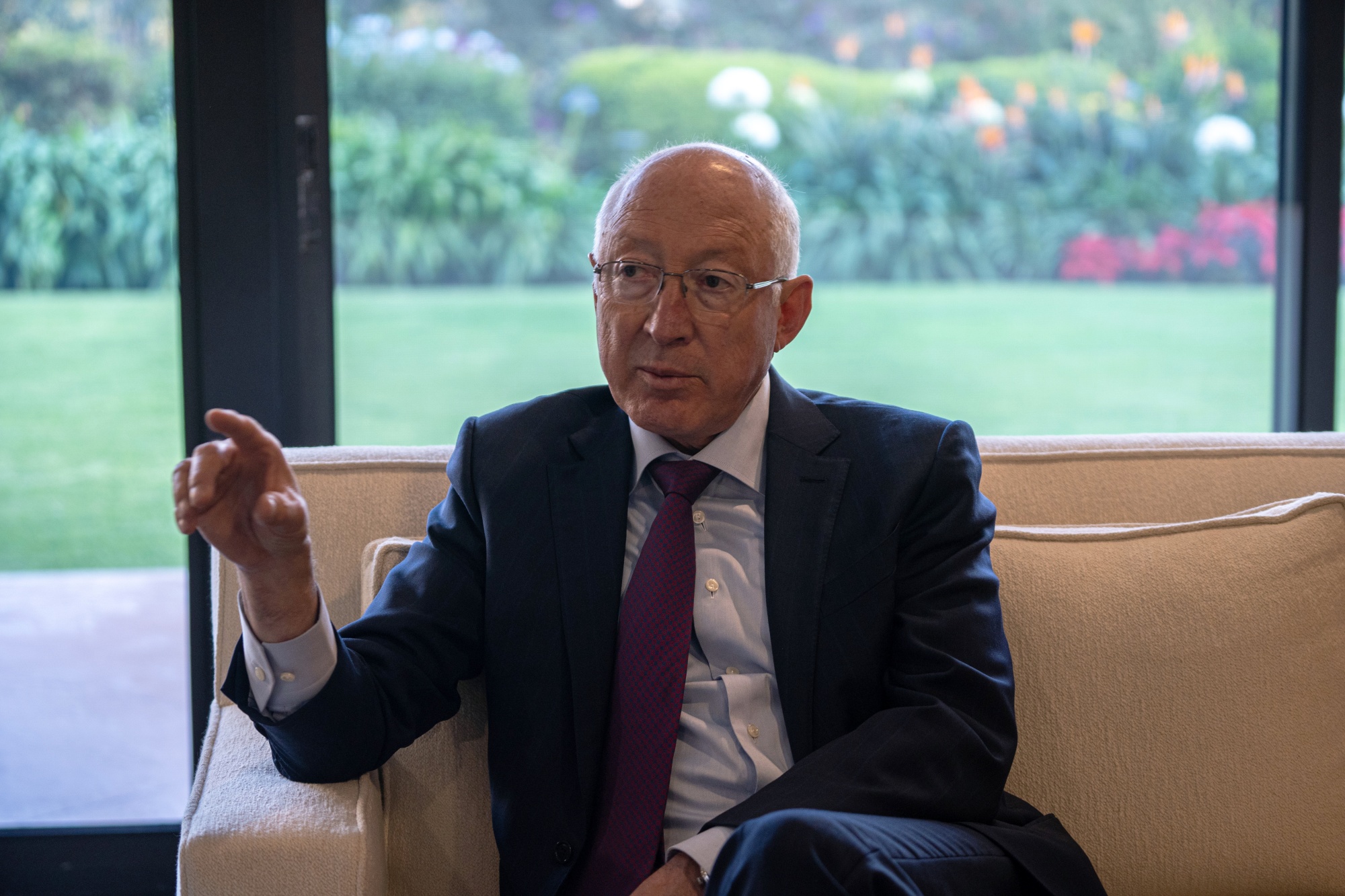 肯·萨拉扎尔,美国驻墨西哥大使,在墨西哥城接受采访,2021年12月14日。摄影师:亚历杭德罗·塞加拉/彭博社关于墨西哥能源政策是否违反北美贸易协定的不同观点,值得成立一个仲裁小组来裁决这个问题,根据总统乔·拜登的大使。