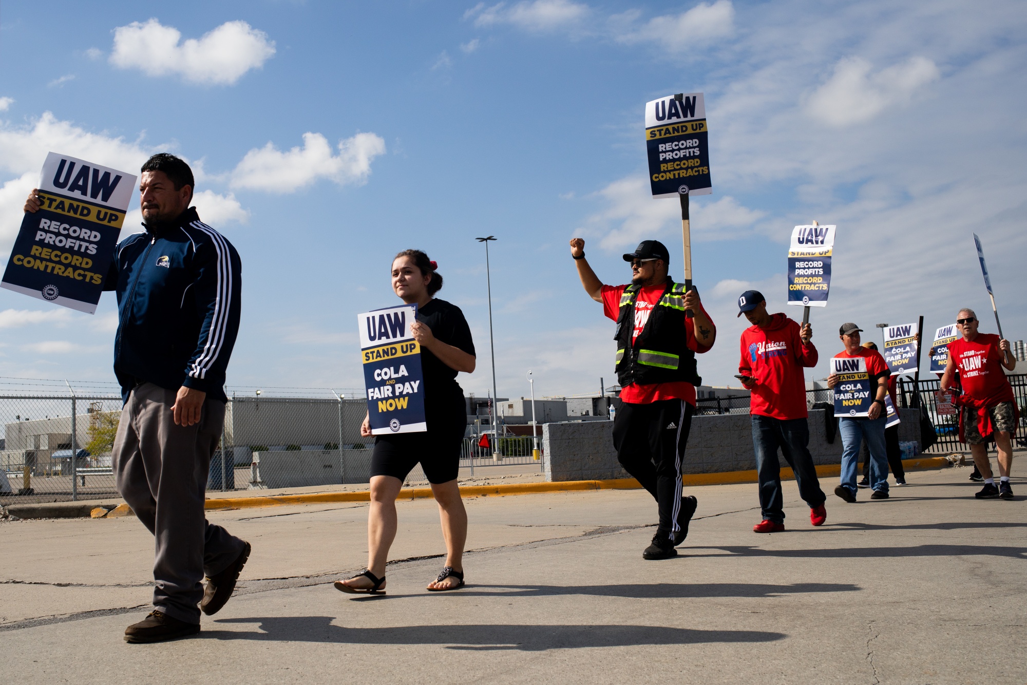 观看:UAW成员继续对抗通用汽车、福特、斯泰兰蒂斯的罢工