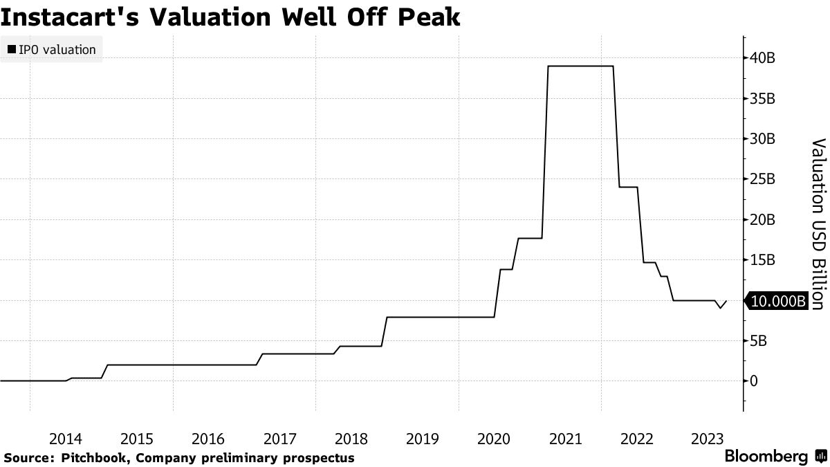 成立于2012年,Instacart是在线杂货配送的先驱,并在冠状病毒大流行期间以390亿美元的估值成为高飞者,当时购物者被困在家里,Instacart成为家喻户晓的名字。但随着病毒的减弱和投资者考虑到更高的利率和潜在的经济衰退,Instacart陷入困境。去年,它将内部估值下调了三次,最后一次是在10月份下调到约130亿美元。