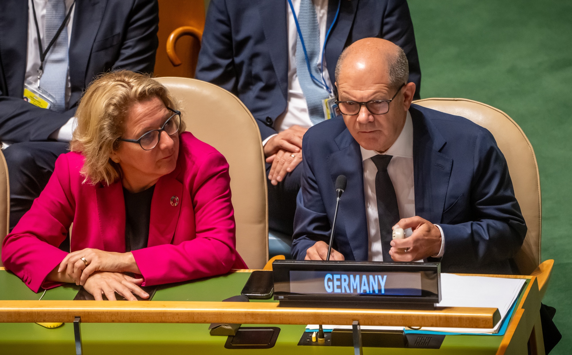 奥拉夫·肖尔茨和斯文亚·舒尔策在9月18日联合国可持续发展目标峰会期间。摄影师:迈克尔·卡佩勒/图片联盟/盖蒂图片社