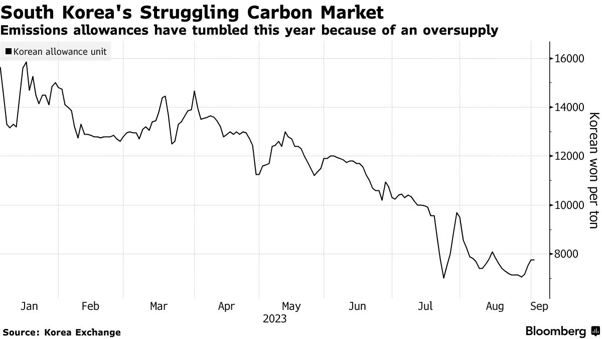 韩国将改革陷入困境的碳市场,因价格暴跌 - 彭博社