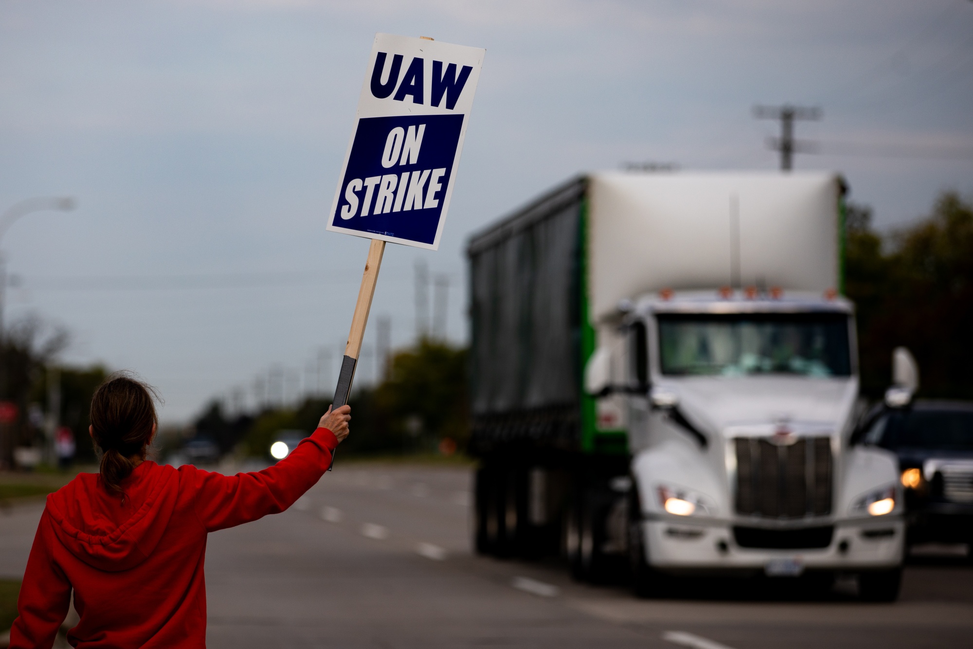 摄影师:Emily Elconin/Bloomberg大型汽车公司和工会工人之间的对峙中几乎没有什么进展,工会工人希望在薪酬和福利方面取得提升,这可能成为美国历史上一次更具有历史意义的工作行动之一。美国汽车工人联合会表示,吉普和克莱斯勒车型制造商斯泰兰蒂斯提出了新的合同要约,但没有透露任何细节。与此同时,通用汽车公司对工会要求36%的工资增长表示反对。通用汽车首席执行官玛丽·巴拉告诉她的薪酬员工,美国汽车工人联合会的要求成本太高。她的公司目前的报价据说将平均年薪提高到15万美元,并附带福利。最初发起针对斯泰兰蒂斯、通用汽车和福特三家工厂的罢工的美国汽车工人联合会主席肖恩·费恩警告说,如果这些公司不提出更好的报价,更多工厂将很快面临罢工。
