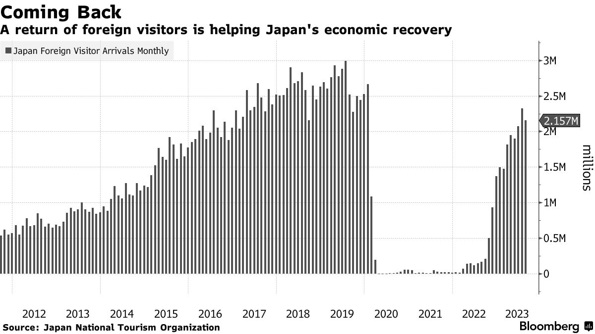 中国帮助日本旅游业逐渐恢复至疫情前水平 - 彭博社