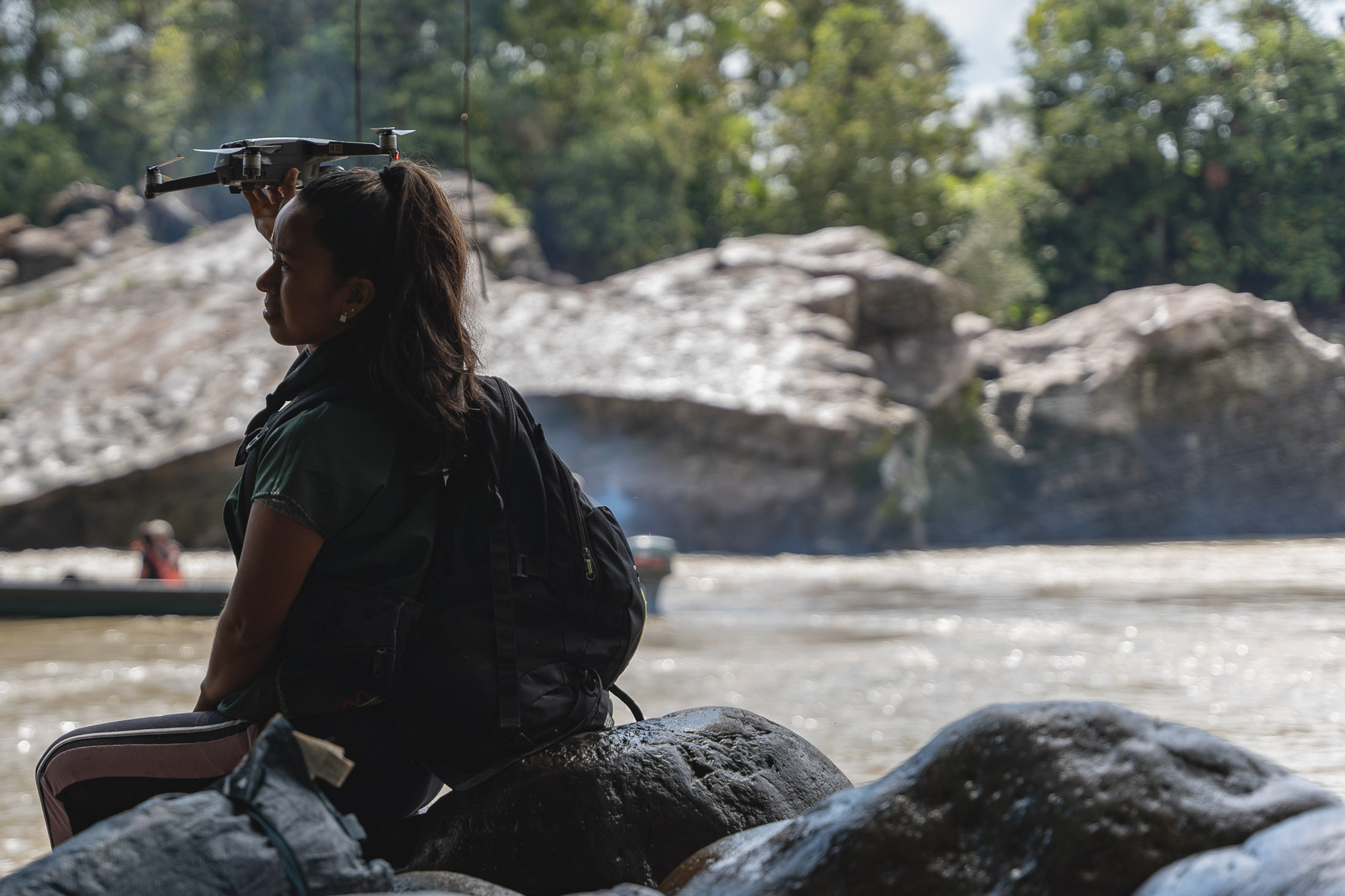 Morelia Mendúa在Aguarico River沿岸巡逻时使用一架无人机。来源:Peter Walle“自从我们开始使用这些工具以来,非法矿工的入侵速度已经放缓。他们被我们土著卫兵的持续存在所吓阻,”安迪在多米尼克·吉尔执导的一部新纪录片中说道,多米尼克·吉尔是2022年彭博绿色纪录片竞赛的获奖者之一。这部电影是与美国非营利组织霍诺德基金会合作制作的。