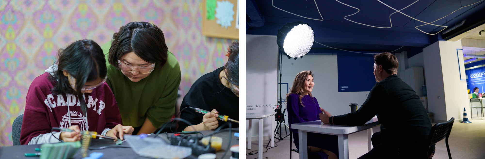 左起:吉尔吉斯空间计划的编程人员;Codify创始人迪娜拉·鲁斯兰摄影师:Suma Hussien/Bloomberg### 观看完本集后要做的事