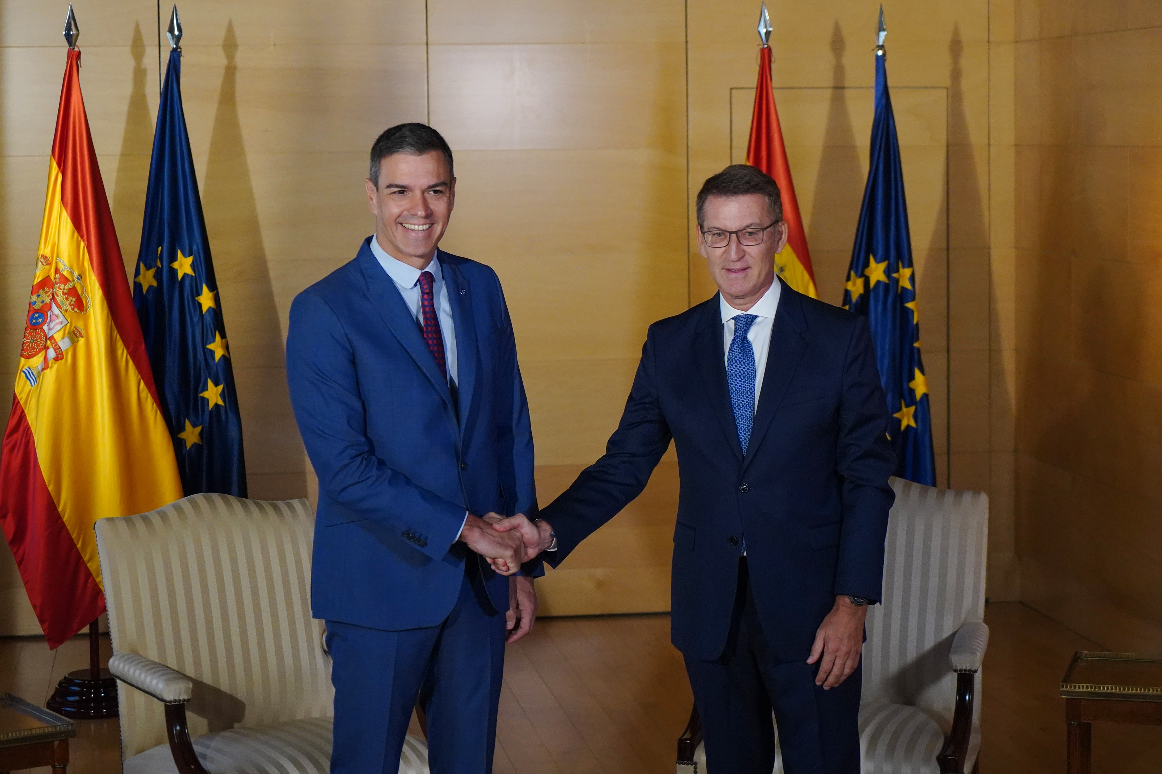 佩德罗·桑切斯(Pedro Sanchez)(左)和阿尔贝托·努涅斯·费霍(Alberto Nunez Feijoo)。