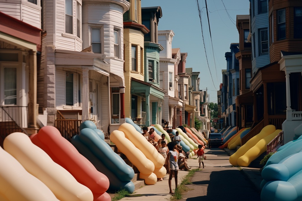 巴尔的摩排屋街道,带有充气式门廊。由Curry Hackett提供 这个Instagram系列是如何开始的?