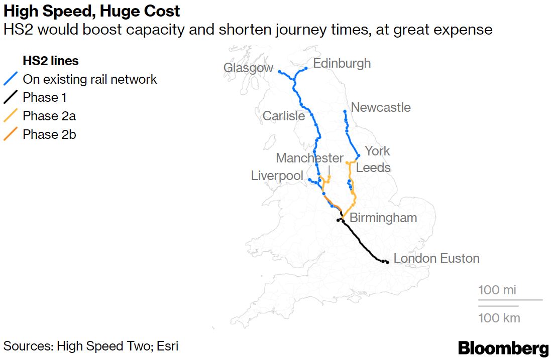 水通常可以扑灭火灾,但最近几天从英国首相府传出的一些泄露信息却激怒了保守党。最新的建议是政府想要搁置英国旗舰高速铁路HS2的伯明翰至曼彻斯特段。彭博社政治编辑基蒂·唐纳森本月早些时候报道了这个故事。“废除HS2”是许多人近年来一直想要的决定,因为所有人都在寻找节省的方法。通常的答复是节省是不可能的 — 这笔钱已经花掉了。但对于如此庞大的项目,即使是避免超支也变得有吸引力(正如我们的记者所说 — 官方成本为710亿英镑,但政府自己的审查称其可能超过1000亿英镑)。