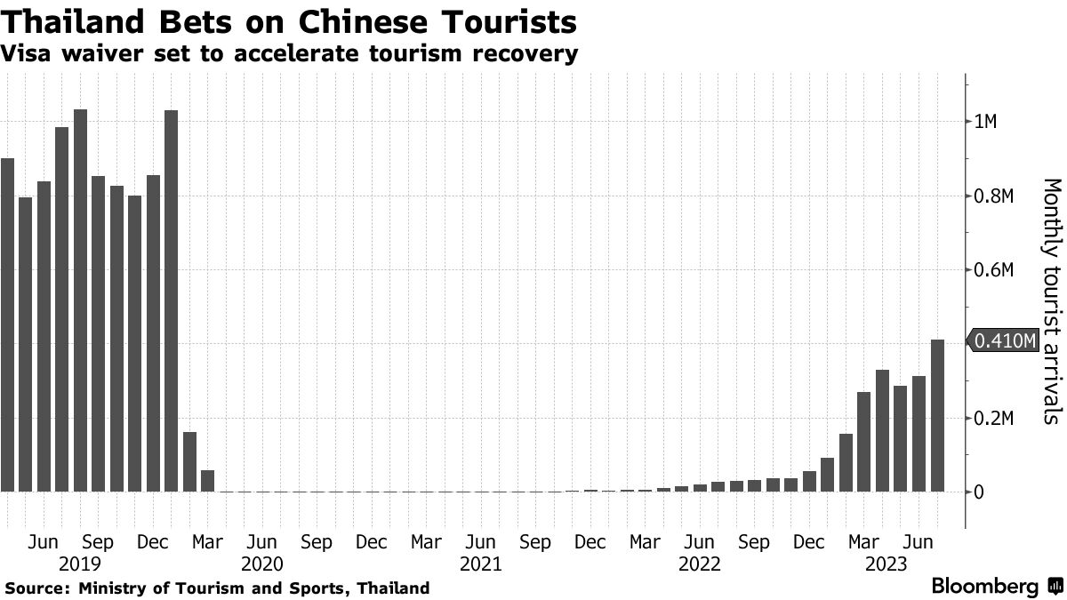 泰国押注中国游客涌入,免签政策启动 - 彭博社