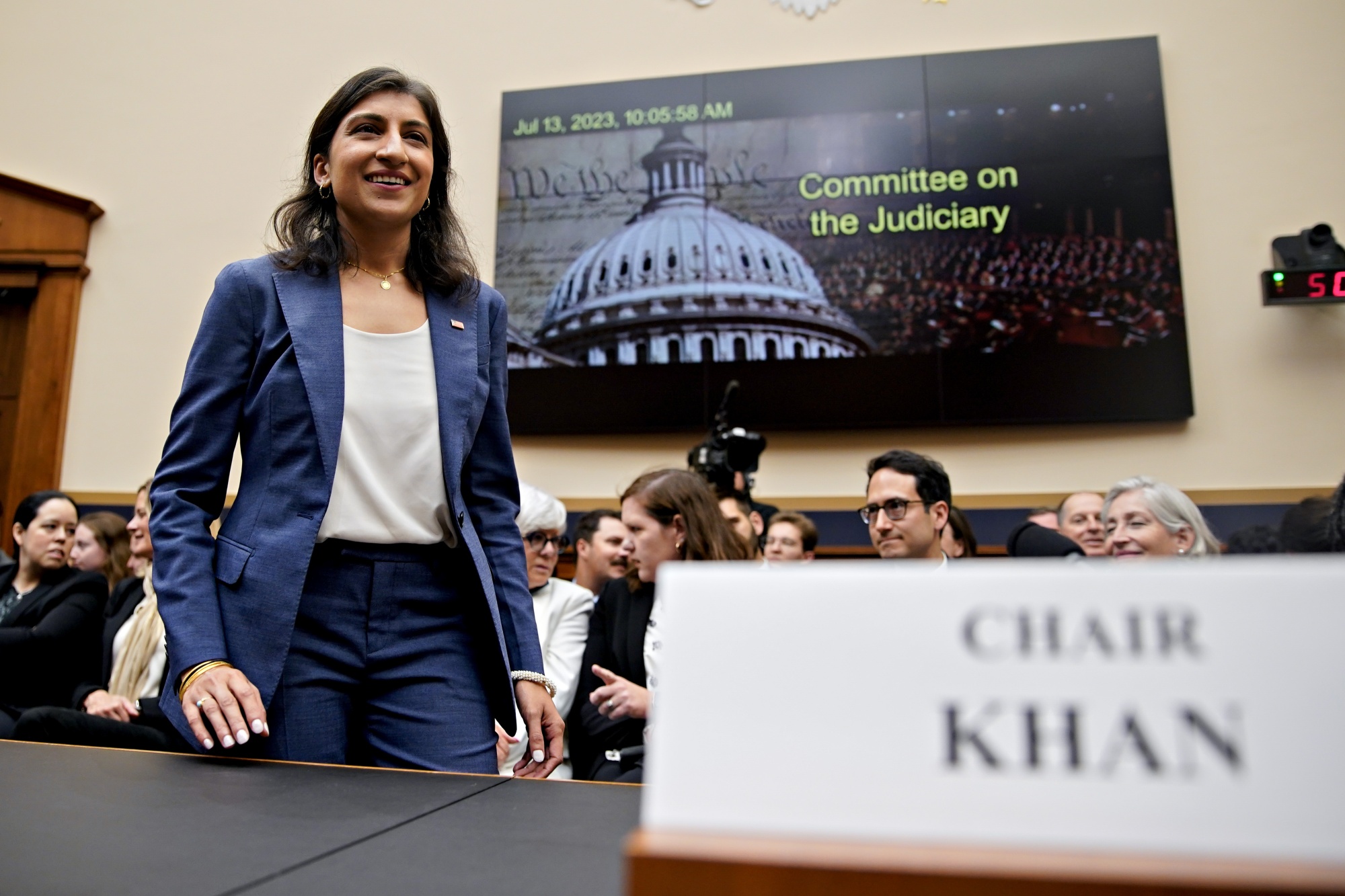 拜登总统任命汗领导联邦贸易委员会的决定受到了反垄断倡导者的欢迎,他们希望美国重返20世纪初的打破垄断的做法。这种新的法律思维流派不仅仅是反对行业整合,还对少数美国公司对科技行业的控制权提出了具体的抱怨。除了她著名的法学论文外,汗还参与了一个众议院小组委员会调查这个问题,最终在2020年发布了一份报告,这份报告帮助制定了一系列关于科技反垄断的法案,在国会两院都得到了关注,但未能成为法律。鉴于这一历史,亚马逊要求汗退出联邦贸易委员会对该公司的调查,但两名法官裁定汗参与在联邦法院提起的案件没有问题。