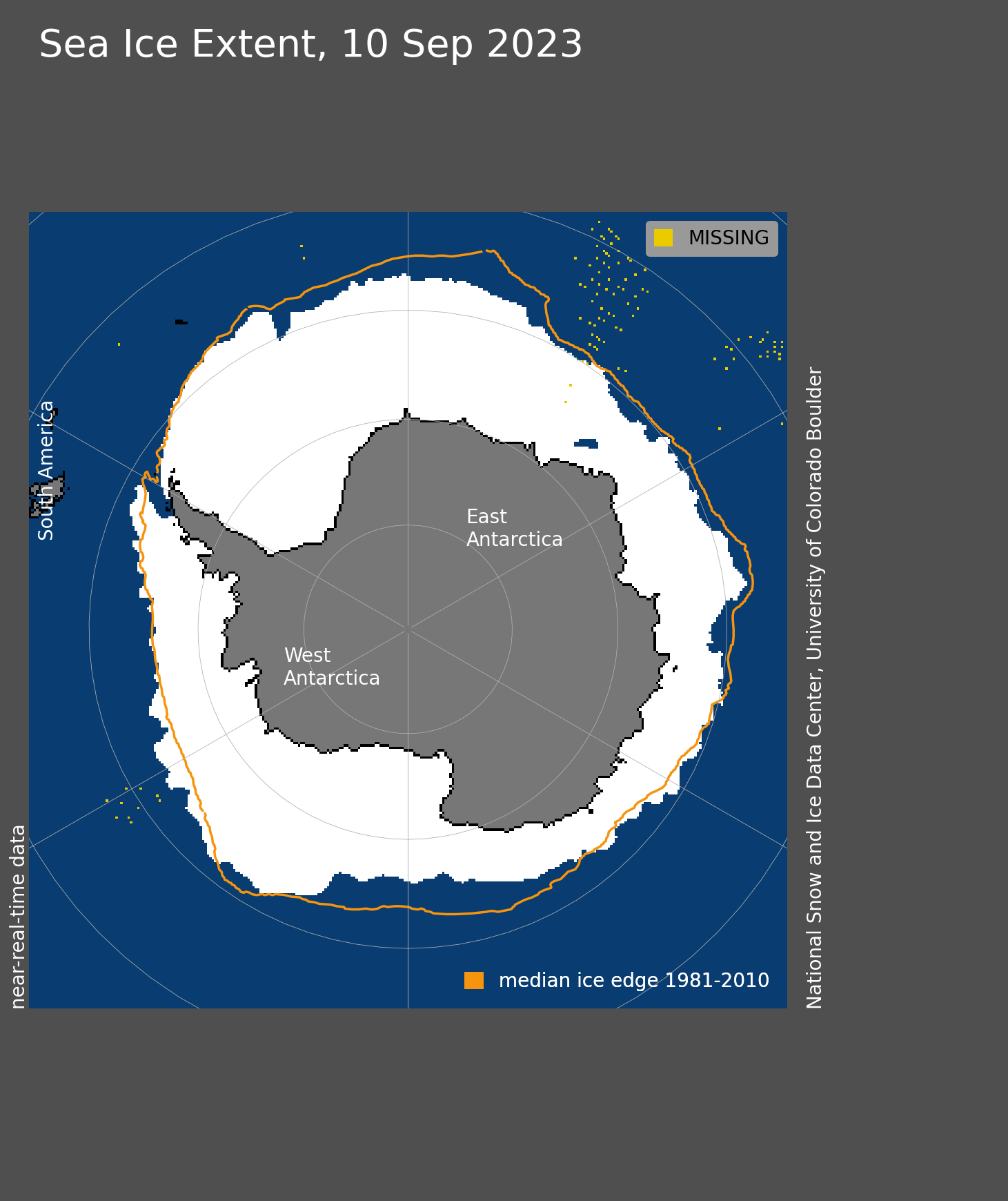 在南极,海冰通常在九月某个时候覆盖了最大的海洋面积。之后,在南半球的夏季,海冰开始缓慢融化。