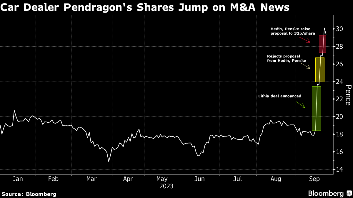 在这一提议之前,Pendragon同意将其英国汽车和租赁部门出售给Lithia Motors Inc.,并与这家美国公司建立战略合作伙伴关系,该交易承诺向其股东支付约2.4亿英镑的现金股息。