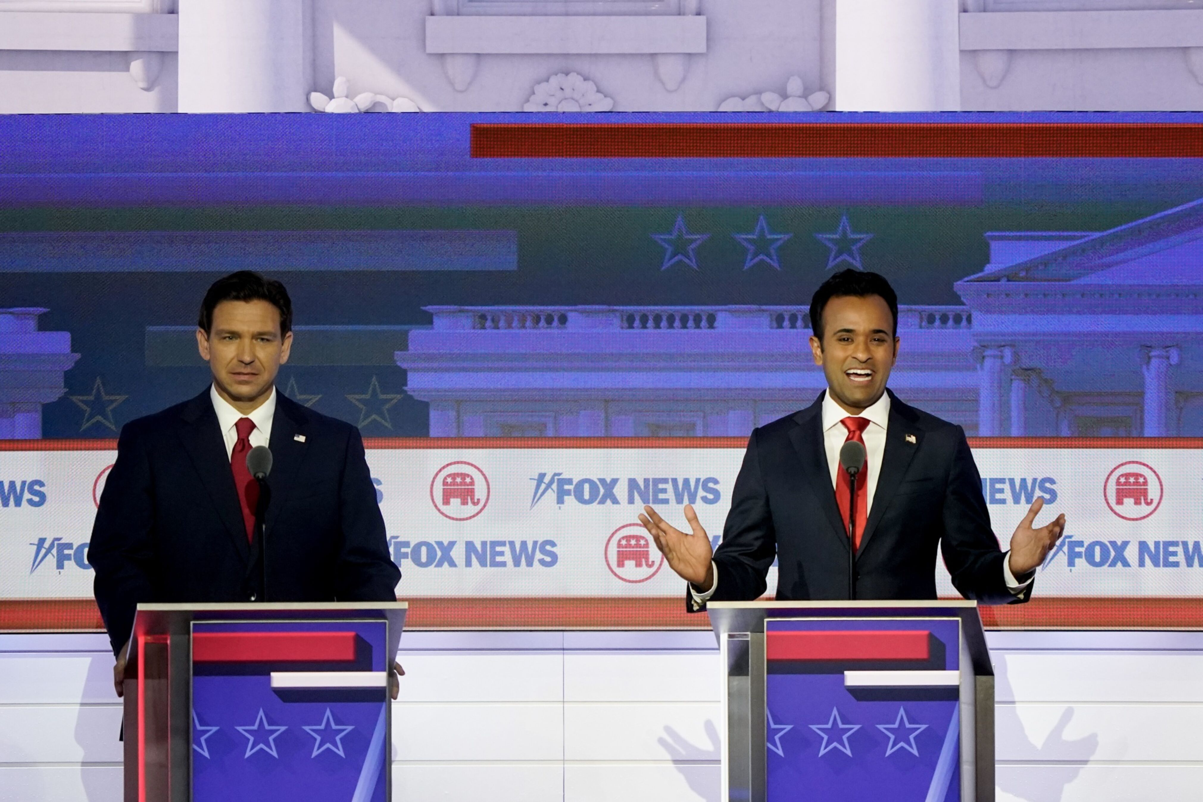 战略转变似乎已经阻止了经济放缓,但拉马斯瓦米明确表示,他在加利福尼亚辩论中的目标是朝着相反的方向推进。在密尔沃基,他以一种强烈的方式列举了挑衅和侮辱,有时让人很难准确地理解他在说什么。即使在被对手们抨击时,他似乎也非常享受这两个小时的表演。在哈利观察到“你没有外交政策经验,这一点很明显”后,他戏剧性地笑了笑,并在克里斯蒂称他为“一个听起来像ChatGPT的家伙”时做了一个拥抱的手势。他还宣称“气候变化议程是一个骗局”,承诺取消对联邦调查局的资助,并嘲讽他的对手们是“超级PAC傀儡”。
