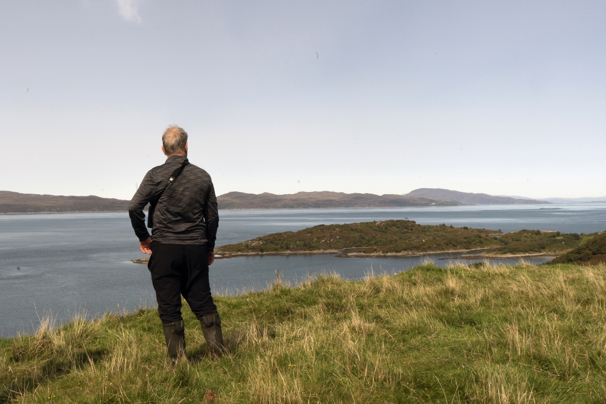 Jeremy Leggett 在 2023 年 9 月 5 日在 Tayvallich 庄园朝向 Jura 海峡眺望。尽管英国 三年前宣布 到 2030 年将保护其 30% 的土地用于自然,众议院环境和气候变化委员会六月份的一份报告 表明,目前只有 6.5% 符合标准。