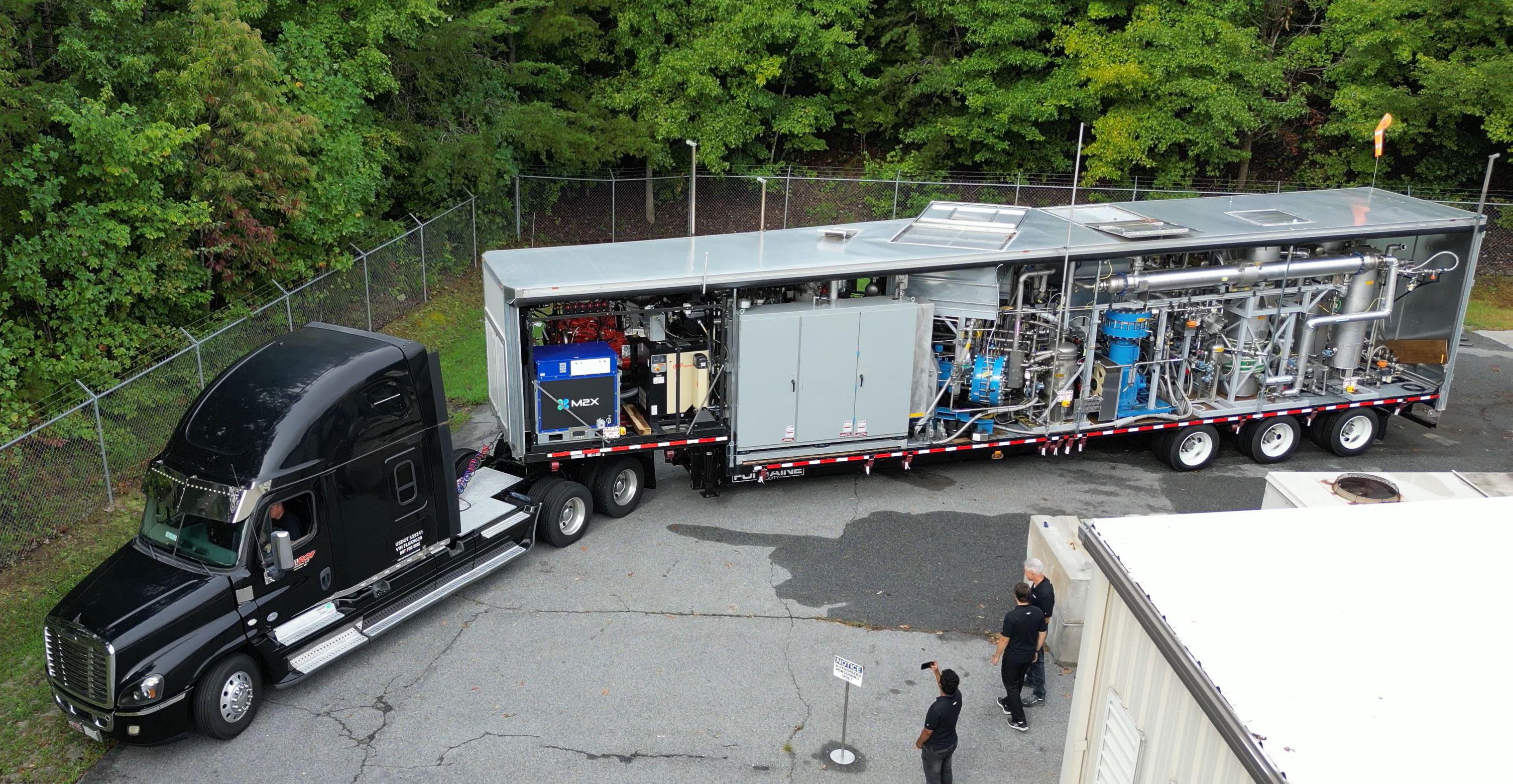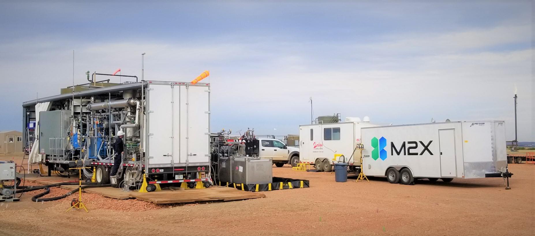 油井通常产生混合原油、天然气和水的混合物,通过加热进行分离。当M2X拖车到达现场时,通常被输送到远离安全距离的火炬的天然气被通过管道转移。尽管M2X在巴肯的初始示范项目使用补充电力和外部冷却器来获取有关电力和冷却器需求的数据,未来的商用装置将完全由该装置改装的内燃机提供动力,该内燃机由天然气流提供燃料。