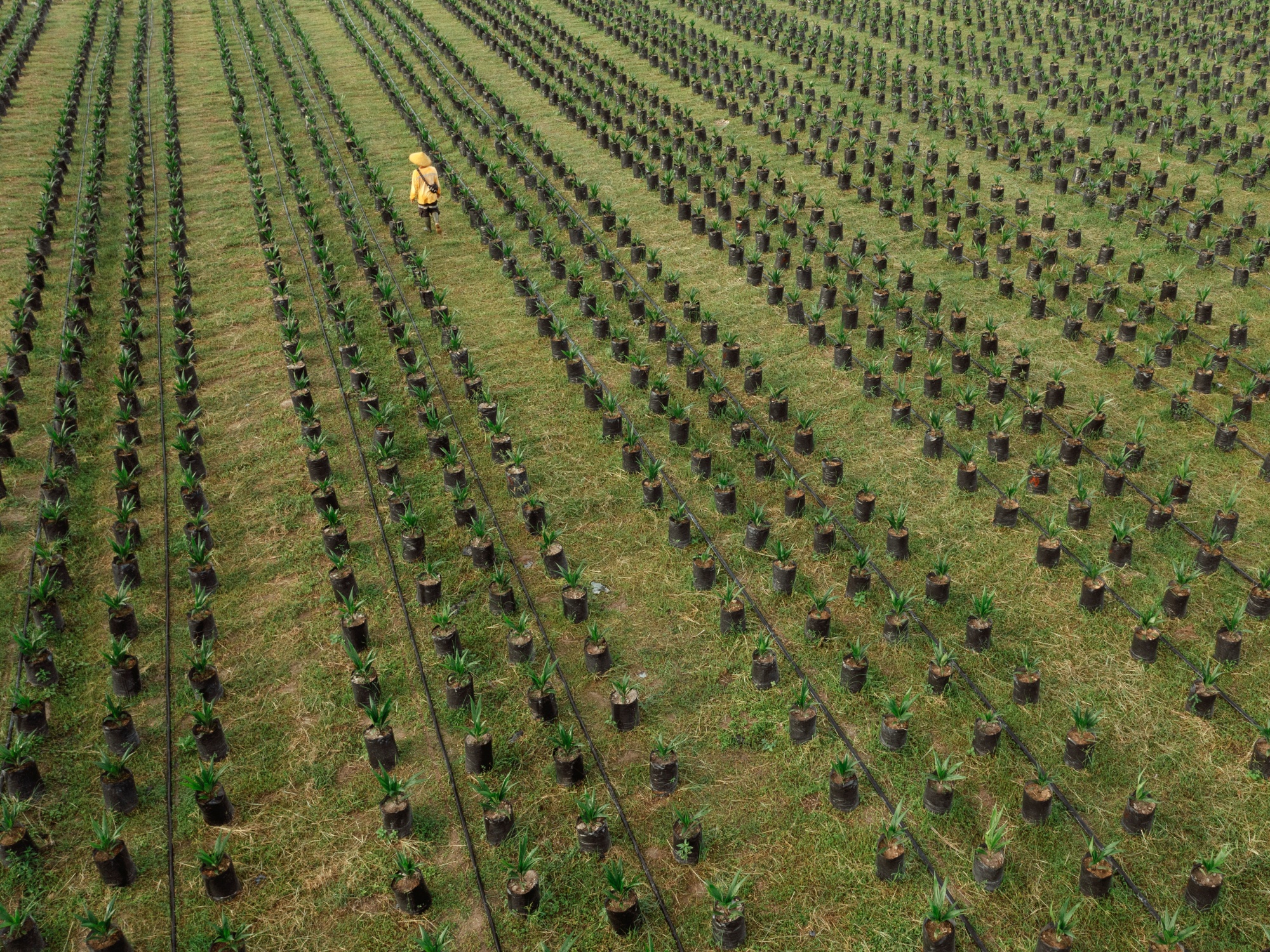 一名GSIP工人种植一棵幼小的棕榈油树。摄影师:Muhammad Fadli/Bloomberg问题不仅仅是财务上的,还涉及结构性问题。环境对一个经常以牺牲原始丛林和森林为代价扩张的行业施加的压力急剧增加。即使重新种植不涉及新的清理,这意味着过去依赖的更快速且生态灾难性的选项,比如清理更多土地以提高产量,现在已不再可行。
