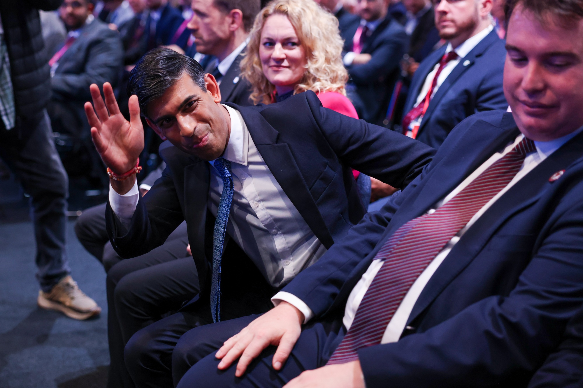 苏纳克可能不太高兴听到观众中响起的热烈掌声 — 包括前脱欧党领袖奈杰尔·法拉奇 — 当活动主持人说,与首相不同,特鲁斯得到了保守党党员的授权。苏纳克是保守党议员选择去年取代特鲁斯的人,但付费活动人士没有发表意见。(Kitty Donaldson)