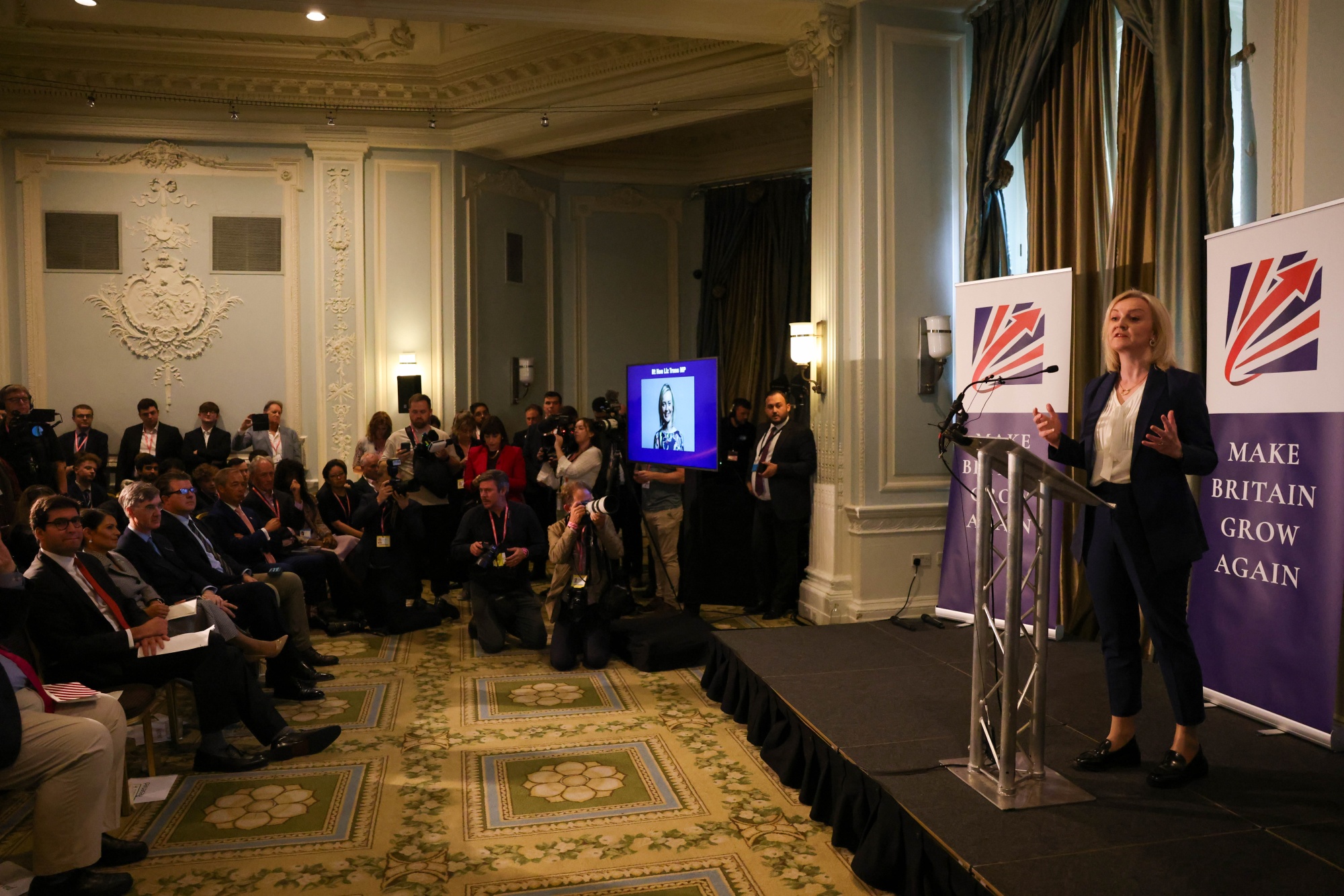 前首相利兹·特鲁斯呼吁减税。摄影师:Hollie Adams/Bloomberg“我们取得了一些进展,我们推迟了对锅炉的禁令,推迟了对汽车的禁令,但我们需要做更多。”她说。“我呼吁财政大臣在秋季声明中将公司税降至19%。”