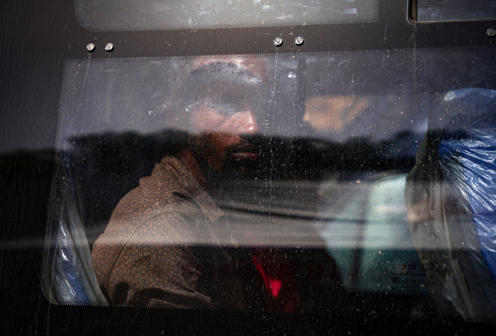 一个移民在9月18日抵达意大利兰佩杜萨岛后乘坐意大利红十字会车辆。