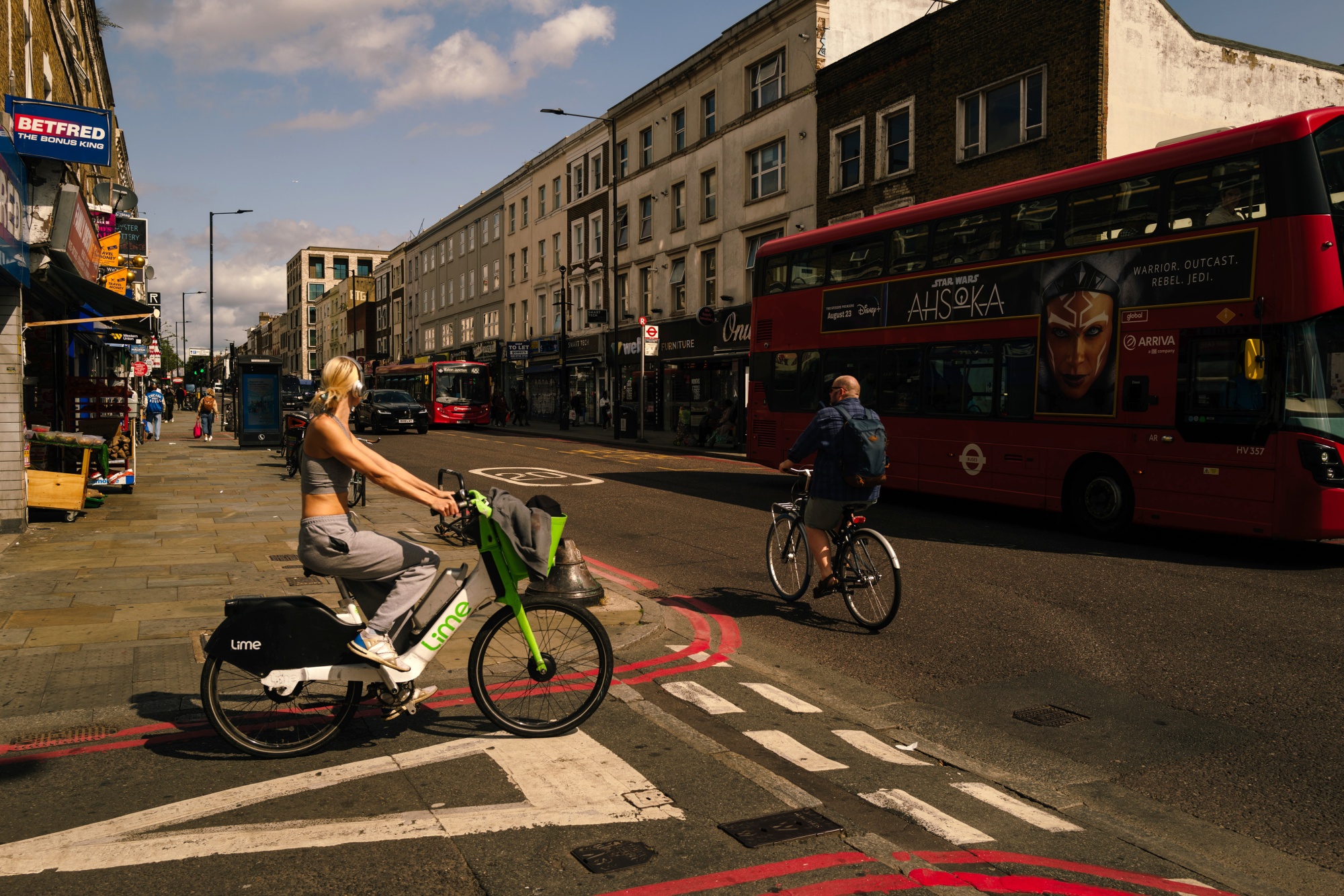 一名骑自行车的人在伦敦骑着Lime租赁电动自行车,时间是8月22日。十五分钟城市是一个规划概念,专注于为人们居住地附近提供便利设施。