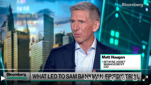 今天在彭博电视台的权力平衡节目中,主持人安玛丽·霍登和乔·马修采访了众议员亨利·奎亚尔,谈及边境资金的未来以及他在下午5:30发生的抢车事件。早些时候在*彭博电视**中,*Bitwise资产管理首席投资官马特·豪根表示,山姆·班克曼-弗里德的FTX审判是“过去的加密货币”。