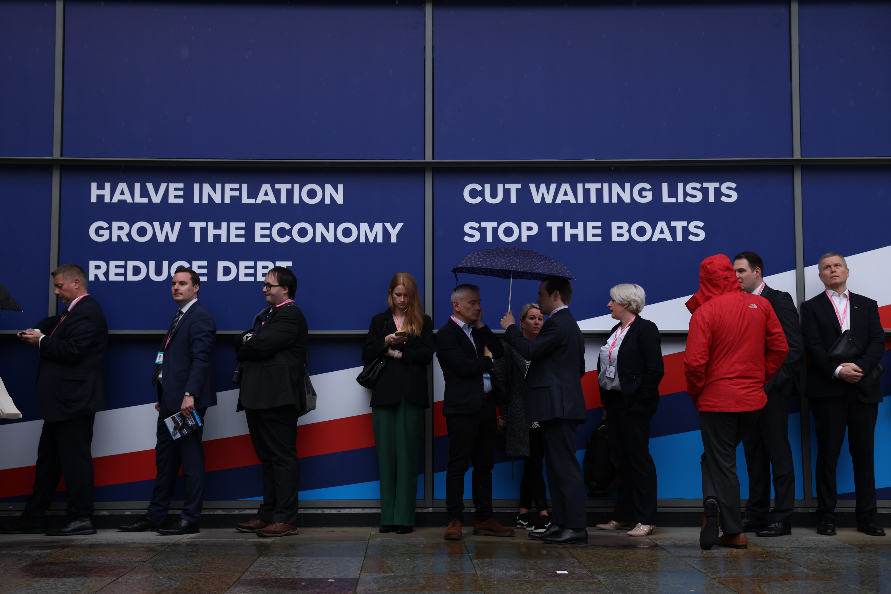 曼彻斯特中央酒店酒吧排队的深度在保守党大会期间是评估托利党情绪和选举前景的良好晴雨表。两年前,随着鲍里斯·约翰逊的声望飙升,工党在民意调查中落后,你几乎无法在游说者、国会议员和工作人员中移动——党内对再度执政十年的前景充满期待。