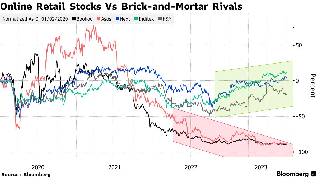 周二的暴跌Boohoo集团股票生动展示了欧洲在线零售股票正陷入困境,而传统实体零售对比之下则势头正劲。