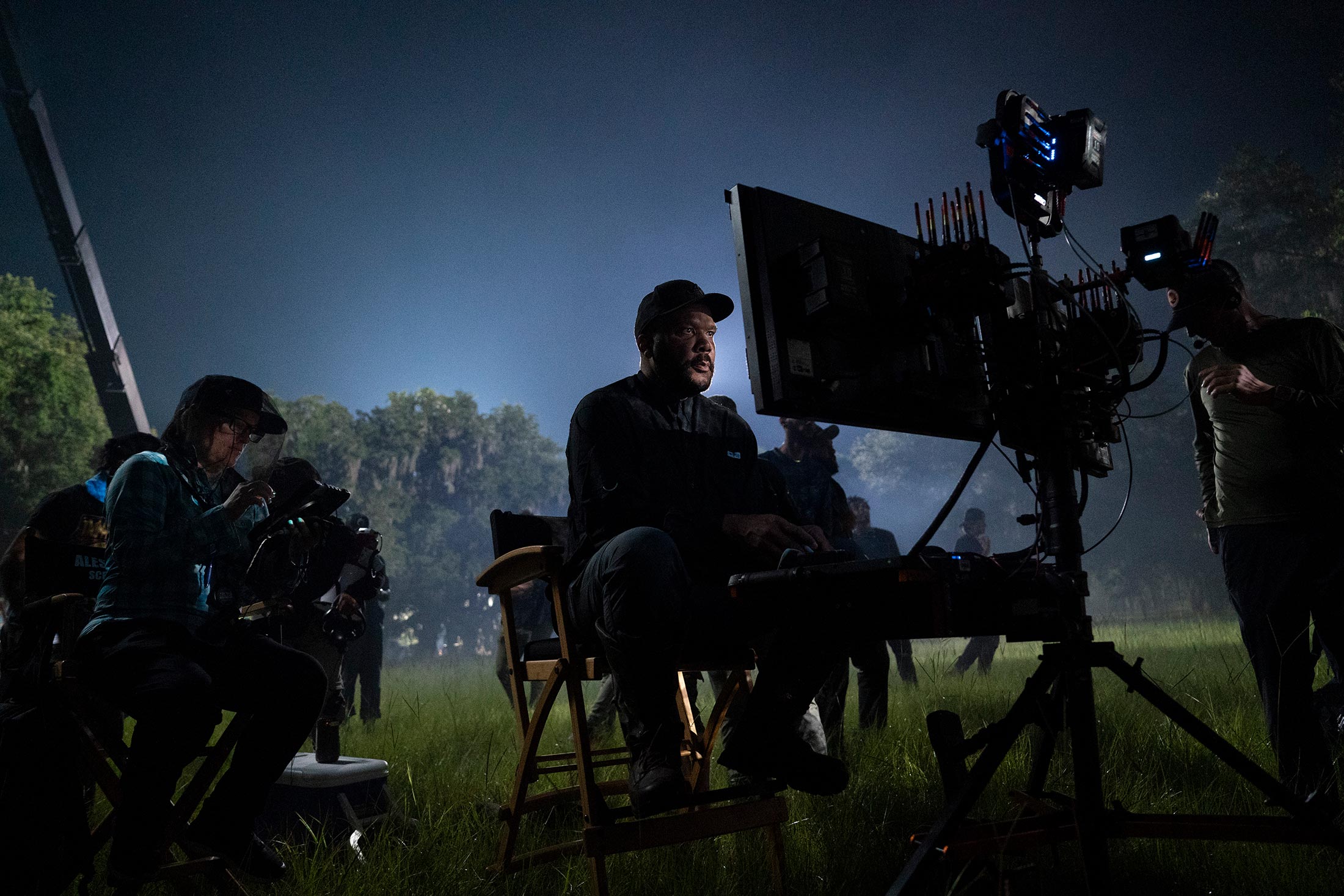 今年夏天,佩里在导演椅上。图片来源:泰勒·佩里工作室当一位电视节目或电影导演一天拍摄10页剧本时,通常被认为是出色的、高效的表现。然而,对于佩里来说,一天拍摄超过120页剧本并不罕见。负责在狮门影业为他的电影做市场营销的蒂姆·帕伦回忆起在佩里早期在乔治亚州的片场拜访这位电影制作人时的情景。帕伦惊讶地发现,当他走进一个巨大的摄影棚时,佩里在那里搭建了一个铁轨,沿着两个飞机库的长度铺设。沿着铁轨,佩里搭建了各种各样的场景,所有场景都提前布光准备好拍摄。“火车上有三台摄影机,在铁轨的两侧,为他正在制作的每个节目都搭建了场景。他会跳上火车,然后前往新闻主播台,然后再跳上火车,前往夜总会场景,”帕伦回忆道。“通常在好莱坞,你搭建一个场景,拍摄完毕后拆除,然后再搭建下一个场景。他却说,‘我要这样做,这样我可以做得更快。’”