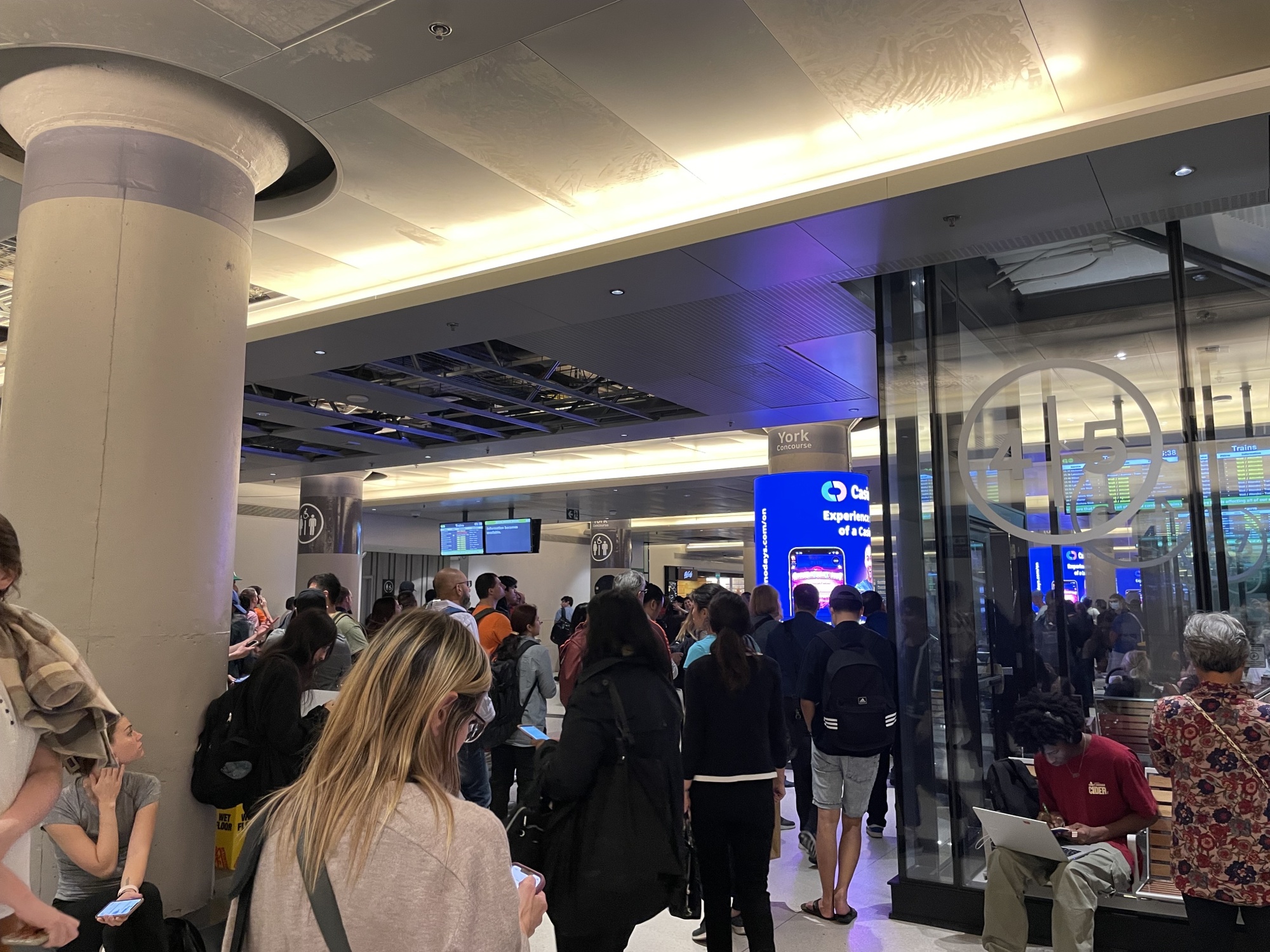 周二下午被困在多伦多联合车站的通勤者。来源:彭博社“GO列车,进出联合车站的VIA列车,以及需要连接到CN服务器的CN客户服务门户网站,目前都受到影响,”Abecassis说。“CN为此问题道歉。我们正在努力确保所有服务安全高效地恢复运行。”