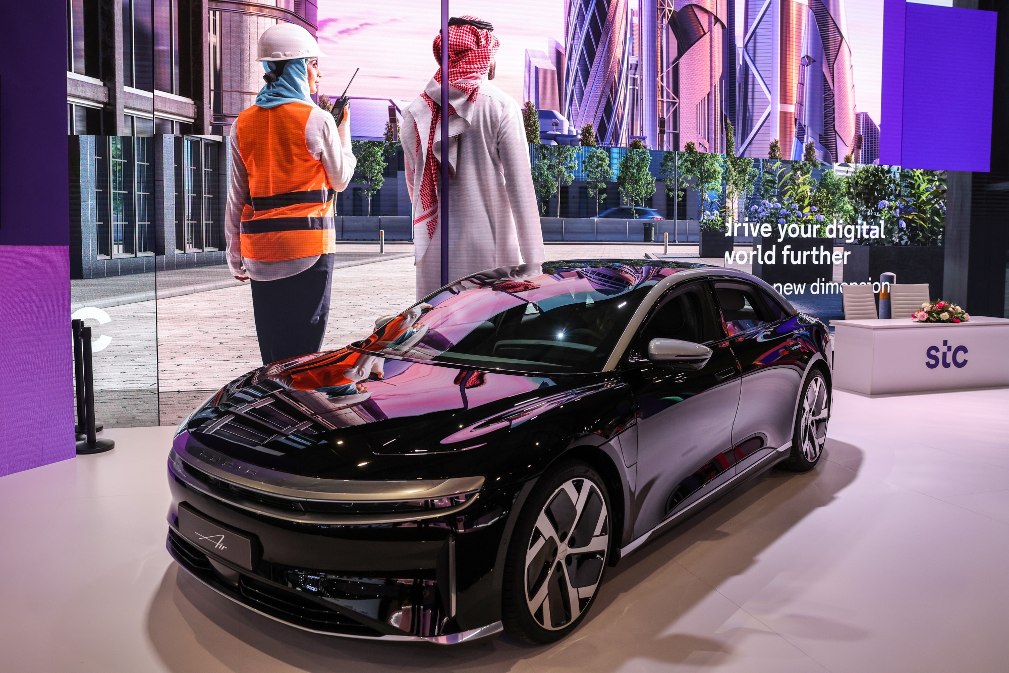 Lucid在西班牙举办的世界移动通信大会上展出的Air EV。摄影师:Angel Garcia/Bloomberg总部位于加利福尼亚的Lucid Group Inc.,刚刚在沙特阿拉伯开设了工厂,预计将展示其Air EV的新版本,观众们正在等待看看是否会出现运动型多用途车Gravity。 Vinfast Auto Ltd.,由越南首富阮福光创立,远远落后于其高昂的销售目标,也参与其中,以及来自中国一汽集团和意大利Silk EV的鲜为人知的混合动力和电动豪华品牌Silk。