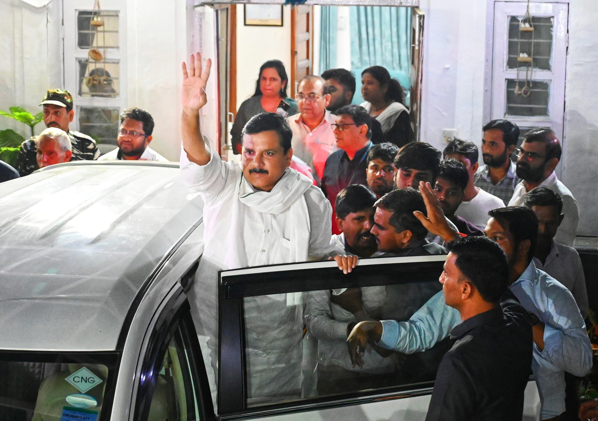 桑杰·辛格在10月4日被捕后挥手。摄影师:Vipin Kumar/Hindustan Times/Getty Images订阅印度版新闻简报,由Menaka Doshi提供 - 一份关于这个新兴经济强国、其背后的亿万富翁和企业的内幕指南,每周发送。