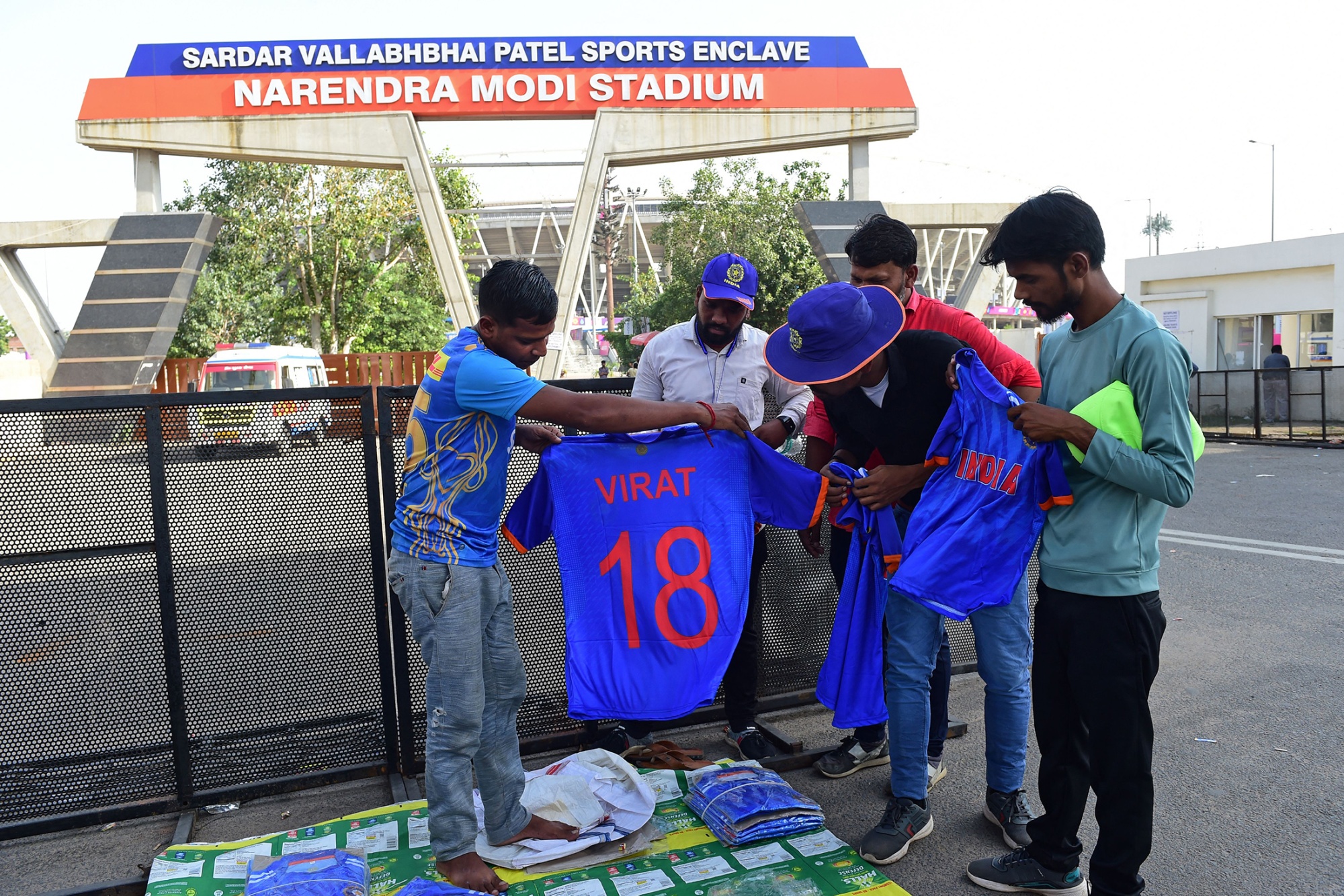 10月2日,在艾哈迈达巴德的纳伦德拉·莫迪体育场外出售印度队T恤。摄影师:萨姆·潘萨基/法新社/盖蒂图片社“与其他运动如足球相比,全球范围内对板球的热闹程度较低,”Sabnavis说,“但你在印度围绕板球所见到的狂热,在其他地方是找不到的。”