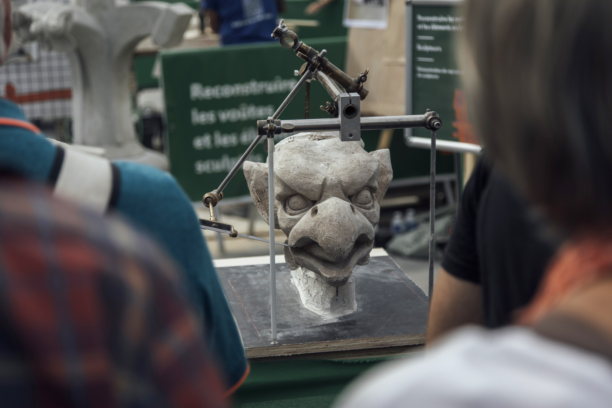 木匠们在欧洲文化遗产日活动上进行示范。摄影师:Cyril Marcilhacy/Bloomberg对于这个工地上无数其他人来说 — 从木匠和石匠到雕塑家和镀金工,重建巴黎圣母院是终生的事业。十年前,60岁的维勒纳夫首次被分配到这座纪念碑,他在心脏上刺了一幅大教堂西部玫瑰经的纹身。大火之后,他又加上了北塔、管风琴、音符、尖顶和将被送回96米高处的铅鸡的一根羽毛。