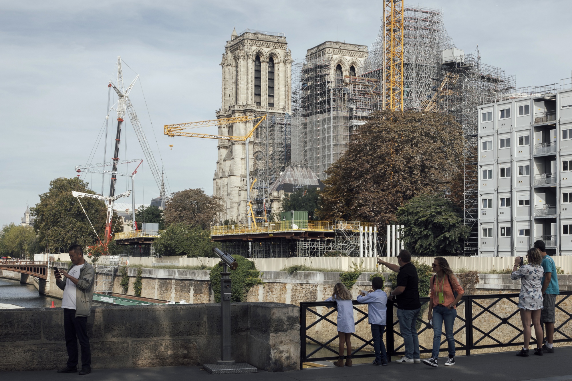 巴黎圣母院的尖塔在2019年的大火中被烧毁并戏剧性地倒塌,目前正在重建中,这是这座哥特式大教堂近9亿美元翻新工程的象征性里程碑,最终接近尾声。