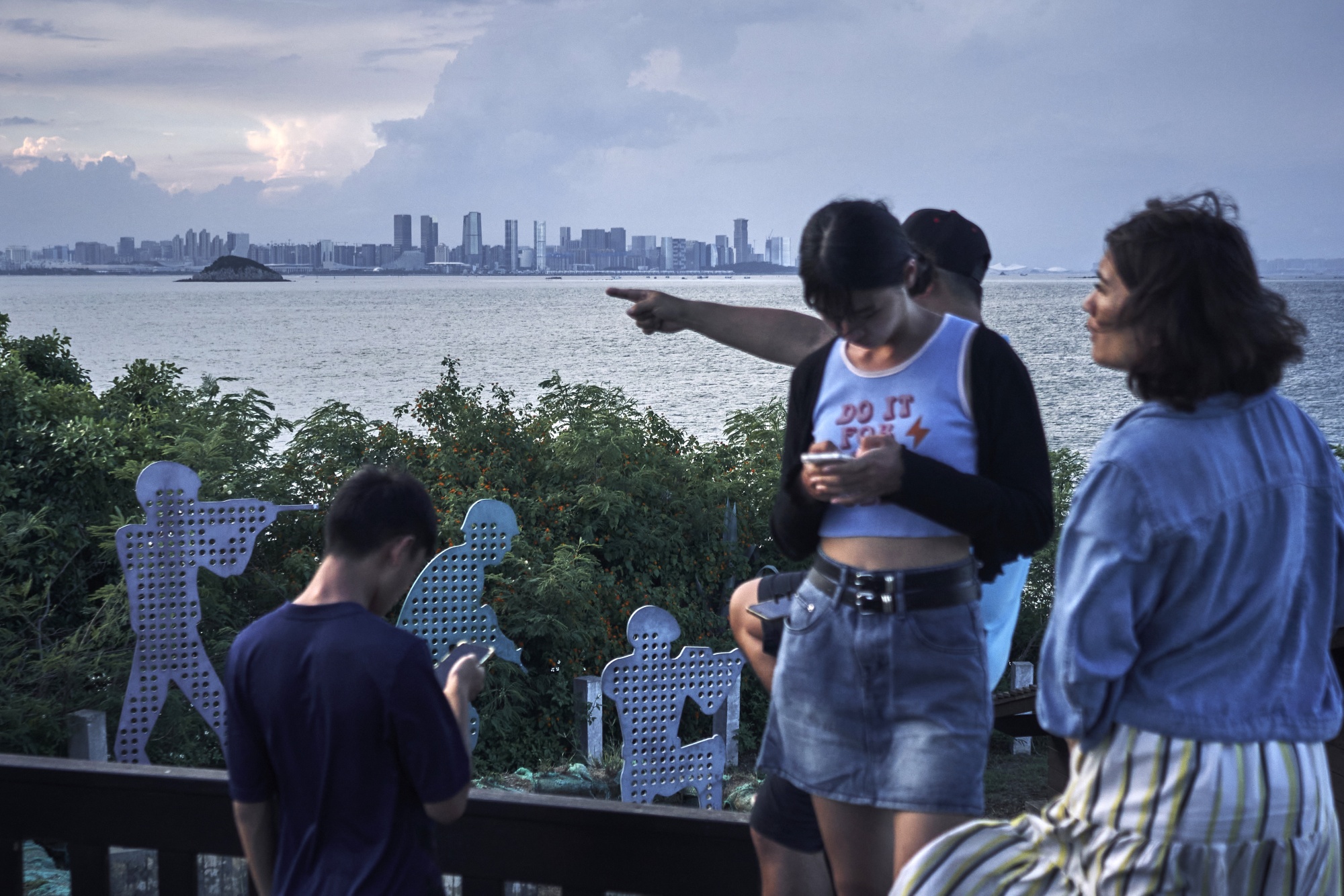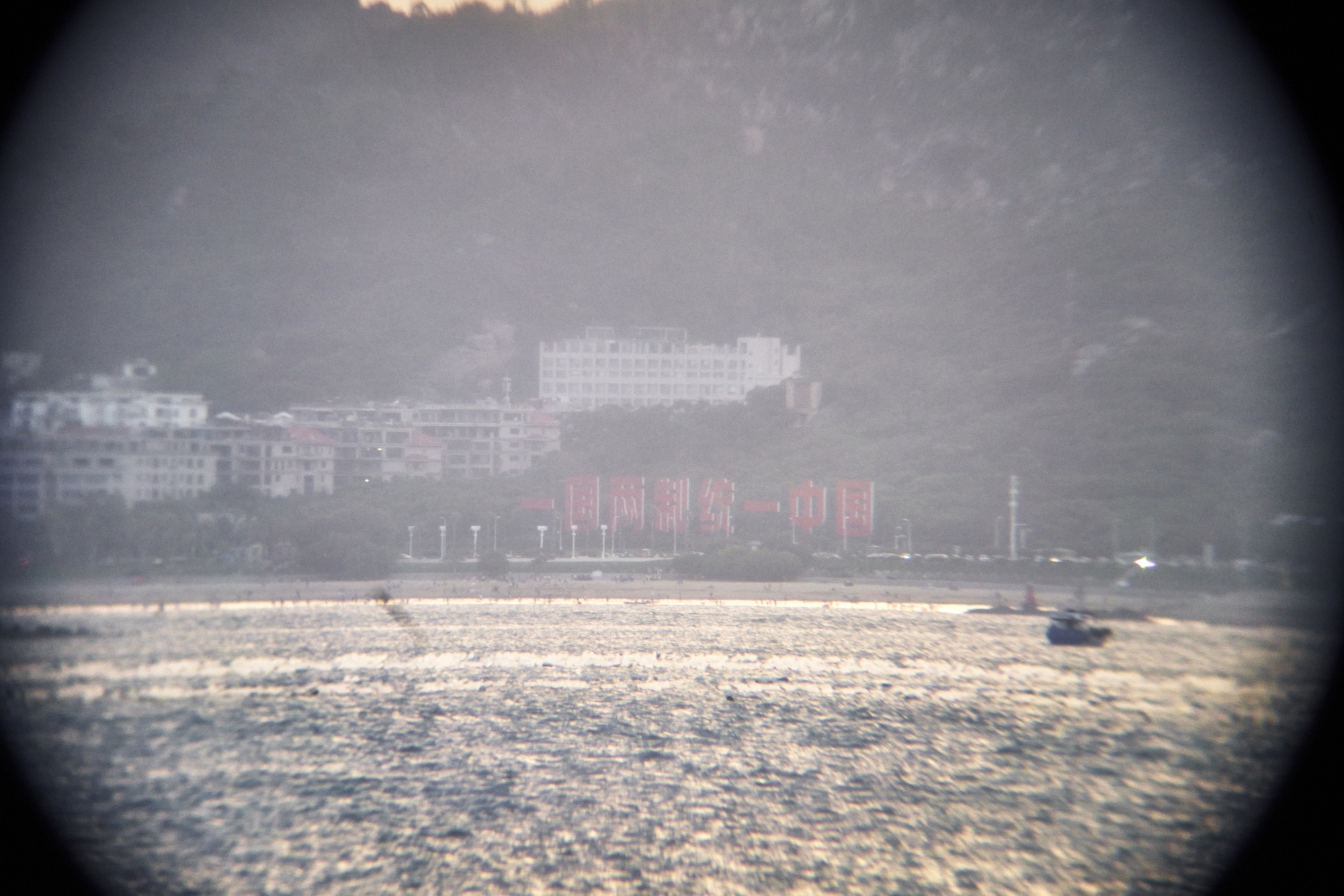 游客从台湾金门眺望中国大陆的厦门。