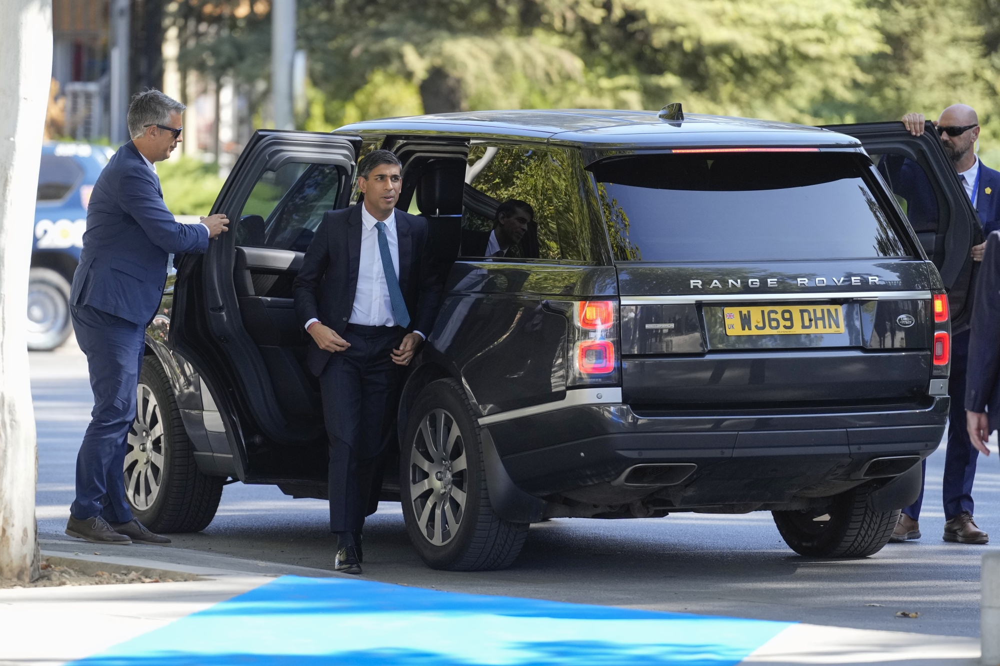 英国首相里什·苏纳克(Rishi Sunak)周四在西班牙格拉纳达参加峰会时离开了一辆路虎SUV。
